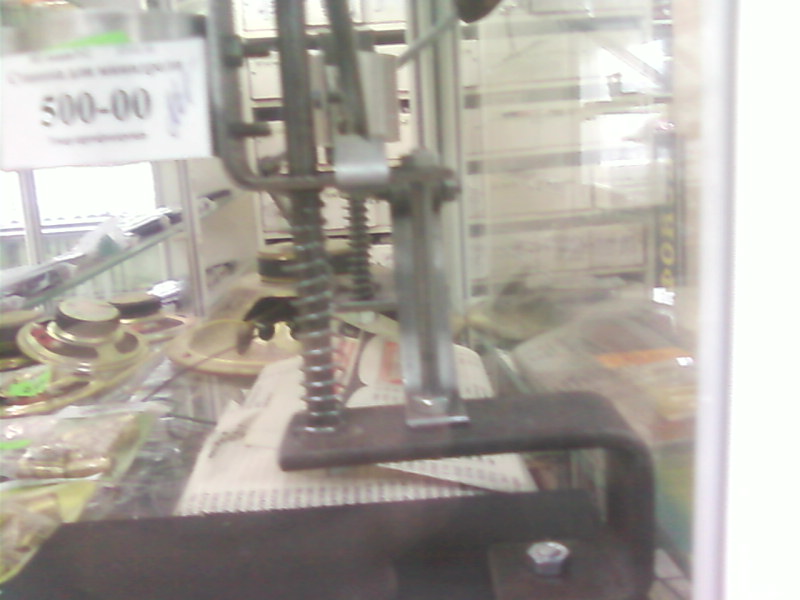 За качество извиняйте, на телефон....станочек похож на самодельную сборку, но прикольный..... На заднем фоне стоит еще один такой же , так что не путайте...вторая пружина от другого...