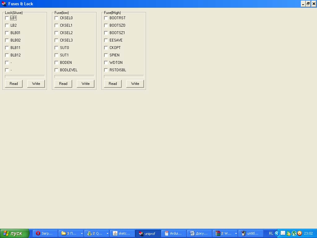 но прошить его через иде не получается(пользуюсь программатором громова) хочу прошить через UNIPROF но не знаю как поставить fuse. подскажите где галочки поставить а то я не очень в этом разбираюсь.