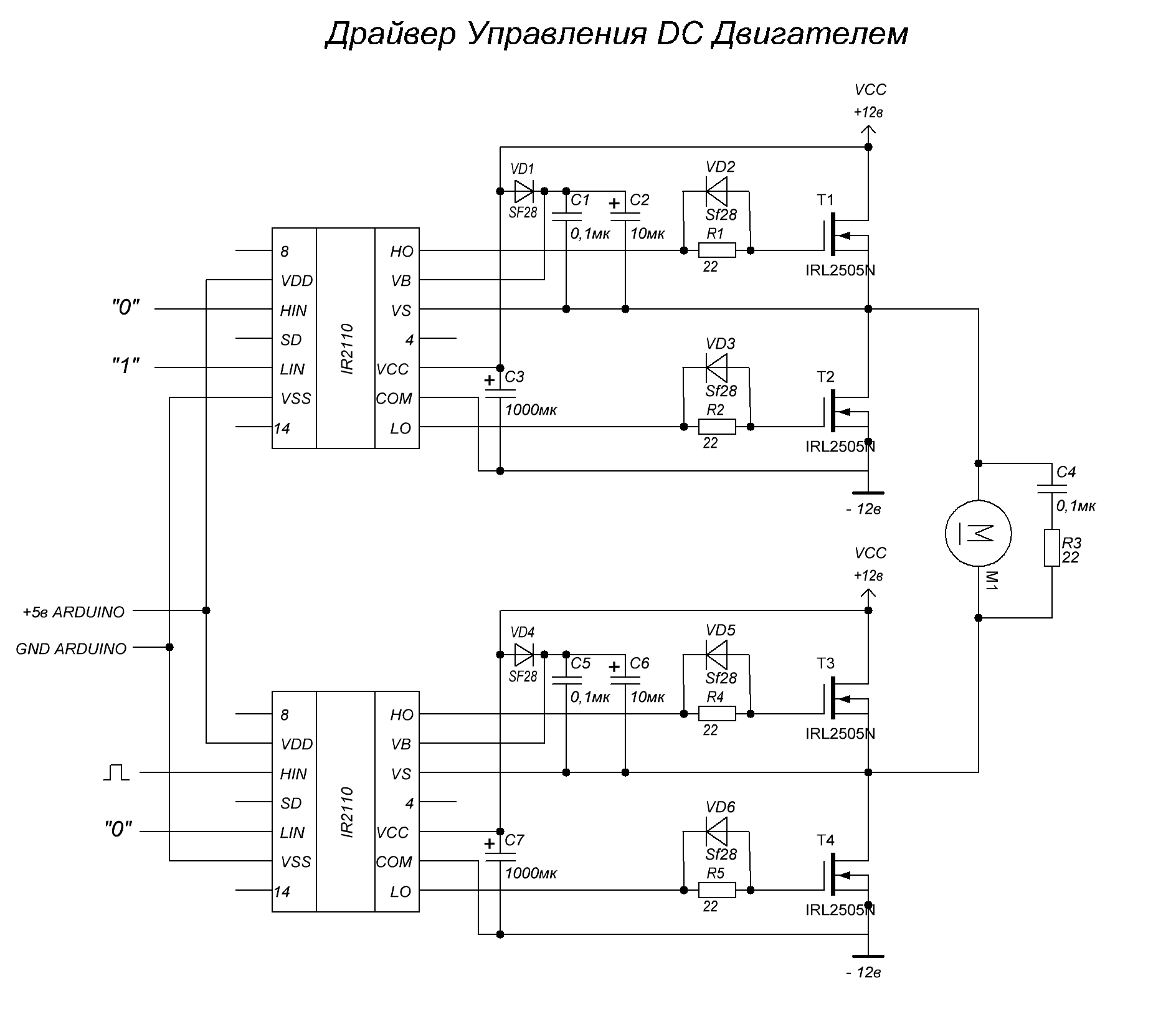 , и о чудо заработали, туда-сюда крутили... но при первом резком реверсе сгорели. Правда, как раз через несколько дней я понял, что по ошибке было подано 24 вольта с аккумулятора вместо 12. Может быть, это тоже сыграло роль. Перепаивать заново было поздно т.к. платы на тот момент распаял, да и деталей под рукой нет таких рабочих. Каждый этот Н-мостик хорошо туда сюда крутил 2 последовательных шуруповертных мотора, можно резко стартовать, но резкий реверс исключить!