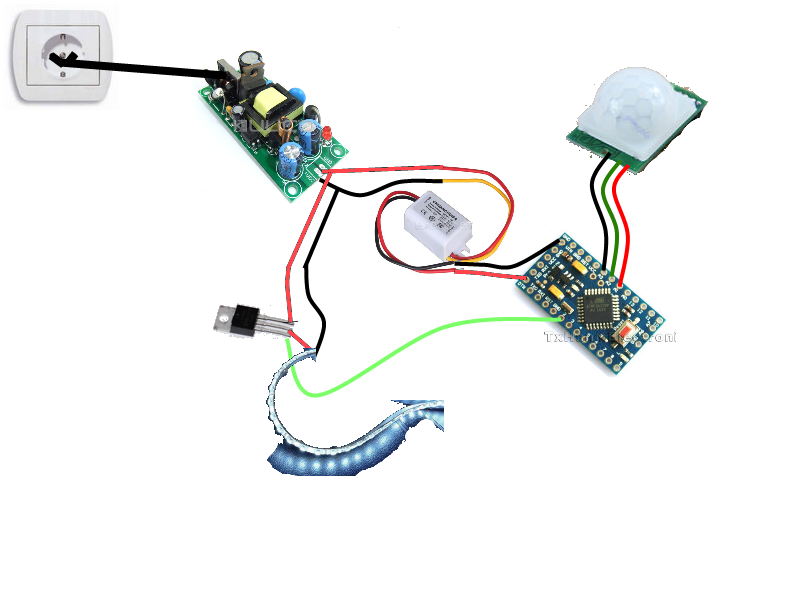 Суть проекта автоматическая люстра в коридоре с датчиком освещённости и присутствия. В качестве источника света диодная лента.