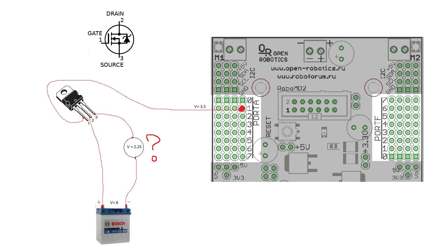 А так чтоб совсем для чайниковможно? Я имею ввиду в терминах рисунка - там пронумерованы ножки "полевика". Земля точно общая. Я пробовал поменять полярность источника питания (я имею ввиду свой рисунок) но результат не изменился...