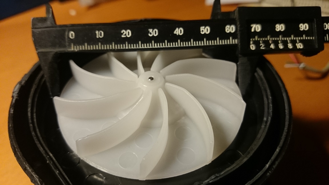 Турбинки пылесосов рассчитывают на опред. расход воздуха, турбинка хобота - на вакуум (меньше расход, больше вакуум), пытаюсь сравнить турбинки, у хобота больше загнуты лопатки (кажись). Для увеличения эффективности турбинки пылесоса надо уменьшать ее диаметр и повышать обороты, но теряем штатный спрямитель, надо его печатать...
