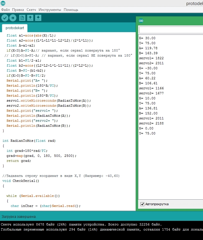 // if(X>0)A=PI-A; // вариант, если серва1 НЕ повернута на 180°