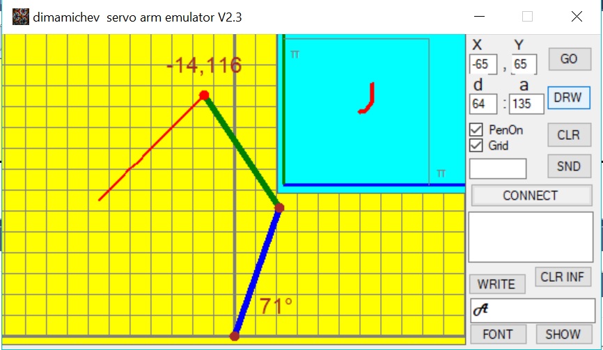 Dmitry__ писал(а): Надо ось "х" не временем делать, а углом одной сервы, а "y" - углом второй сервы. Тогда пойдут закономерности.