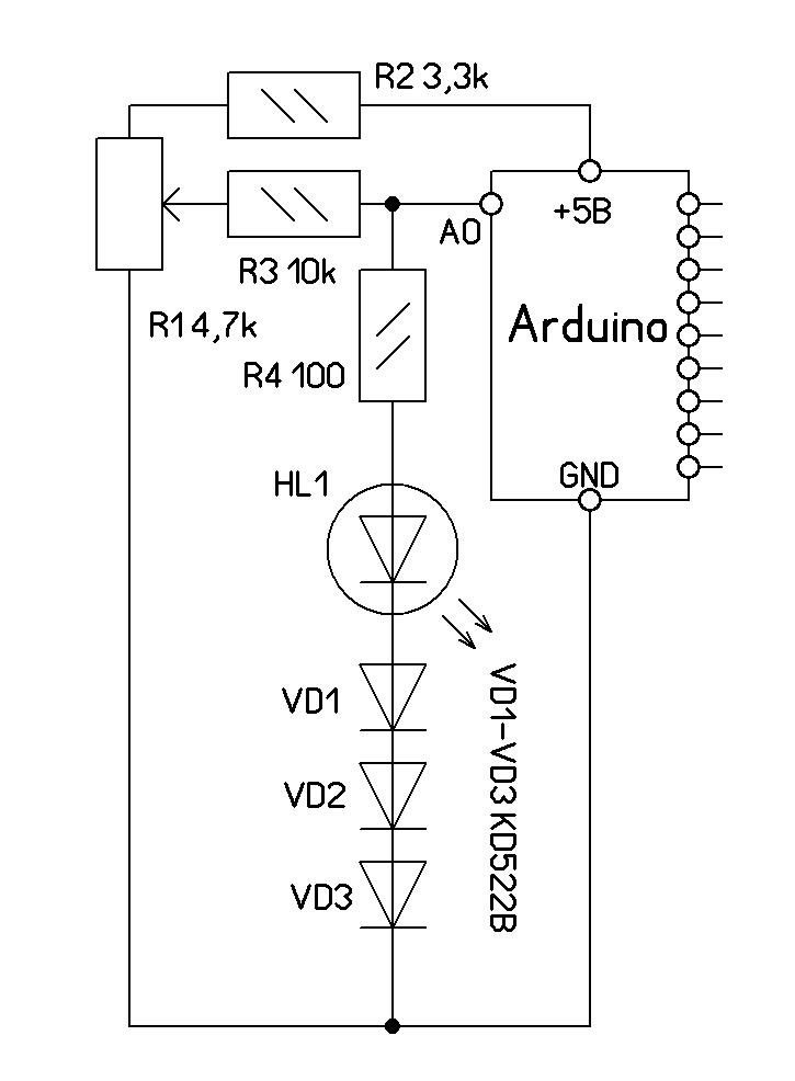 Dmitry__ писал(а):Я же обьяснял, диод - это стабилитрон, он не даст напряжению быть выше напряжения падения на диоде. Поэтому диапазон входных напряжений от потенциометра будет не от 0 до 5v, а от нуля до напряжения падения на диоде. Низкоомный резистор r3 не считается, т.к. он значительно меньше сопротивления r2.