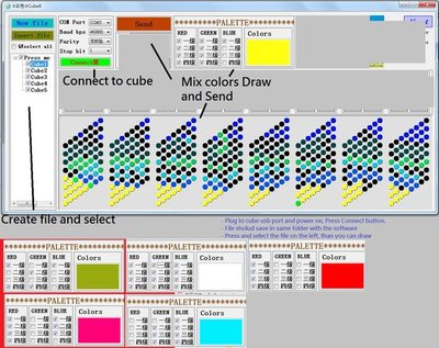Возник такой момент-вопрос: в принципе эффекты анимации можно писать на ПК, достаточно создать приложение-симулятор куба с массивом чисел на выходе (на картинке такой массив получается при рисовании мышью на самом кубе). Нет ли инструмента подобного инвентору, но для ПК, а не смартфонов? Тогда можно было бы создать симулятор реального куба для создания файла эффектов только с одним ПК.