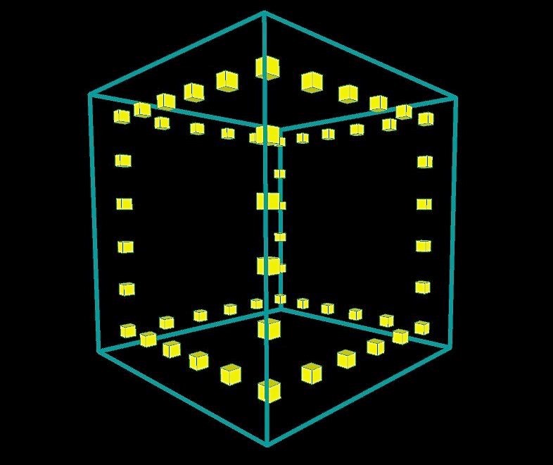 if(fl==1){translate(2*R*x,2*R*y,2*R*z);strokeWeight(1);noFill();box(R/2);translate(-2*R*x,-2*R*y,-2*R*z);}// условие видимости всего куба