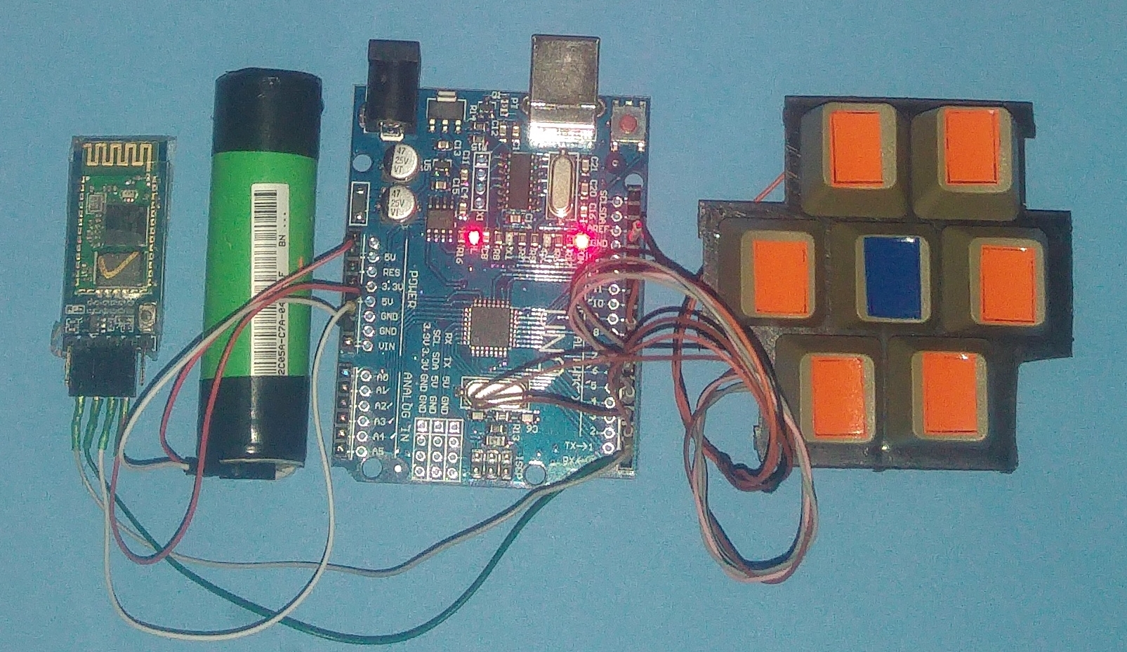 Мозги какие то с глазками получились. Не удержался, добавил пульт со смартфона. Железный пульт на кнопках не понравился, сделал версию с джойстиком - лучше чуток.