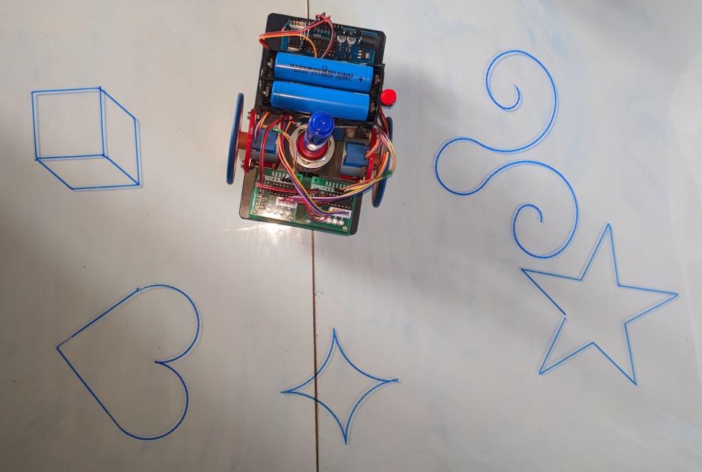Реализовал ик управление с пульта в трёх уровнях - рисование на глазок, точное по заданию величин углов и длин отрезков-дуг, отрисовка запрограммированных картинок. Думаю как найти готовое приложение к пк или самописное сделать по мотивам векторного рисования.