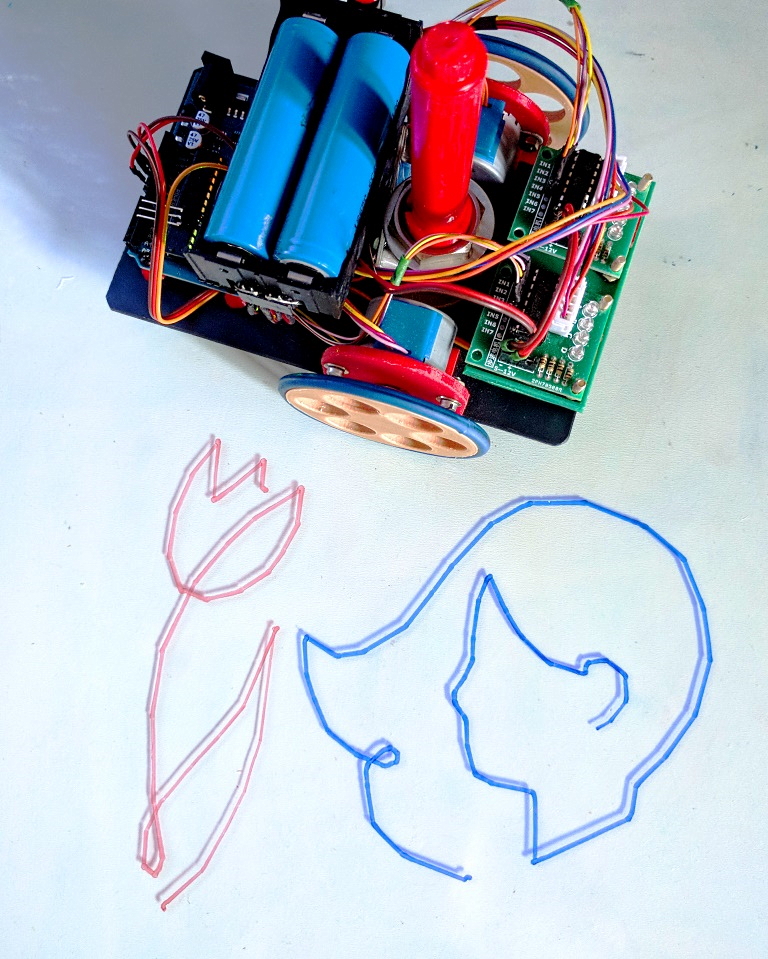 Маркер поднимает-опускает сервопривод, просто стиль рисунков такой - одной линией (двумя, тремя и т.д.).
