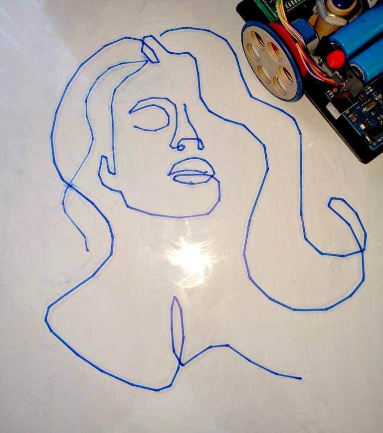 это накопившаяся ошибка буквально в пару-тройку градусов и чуток в миллиметрах при перемещении (там несколько рисунков лиц, цветка и т.д., у которых не так уж и мало линий и поворотов).