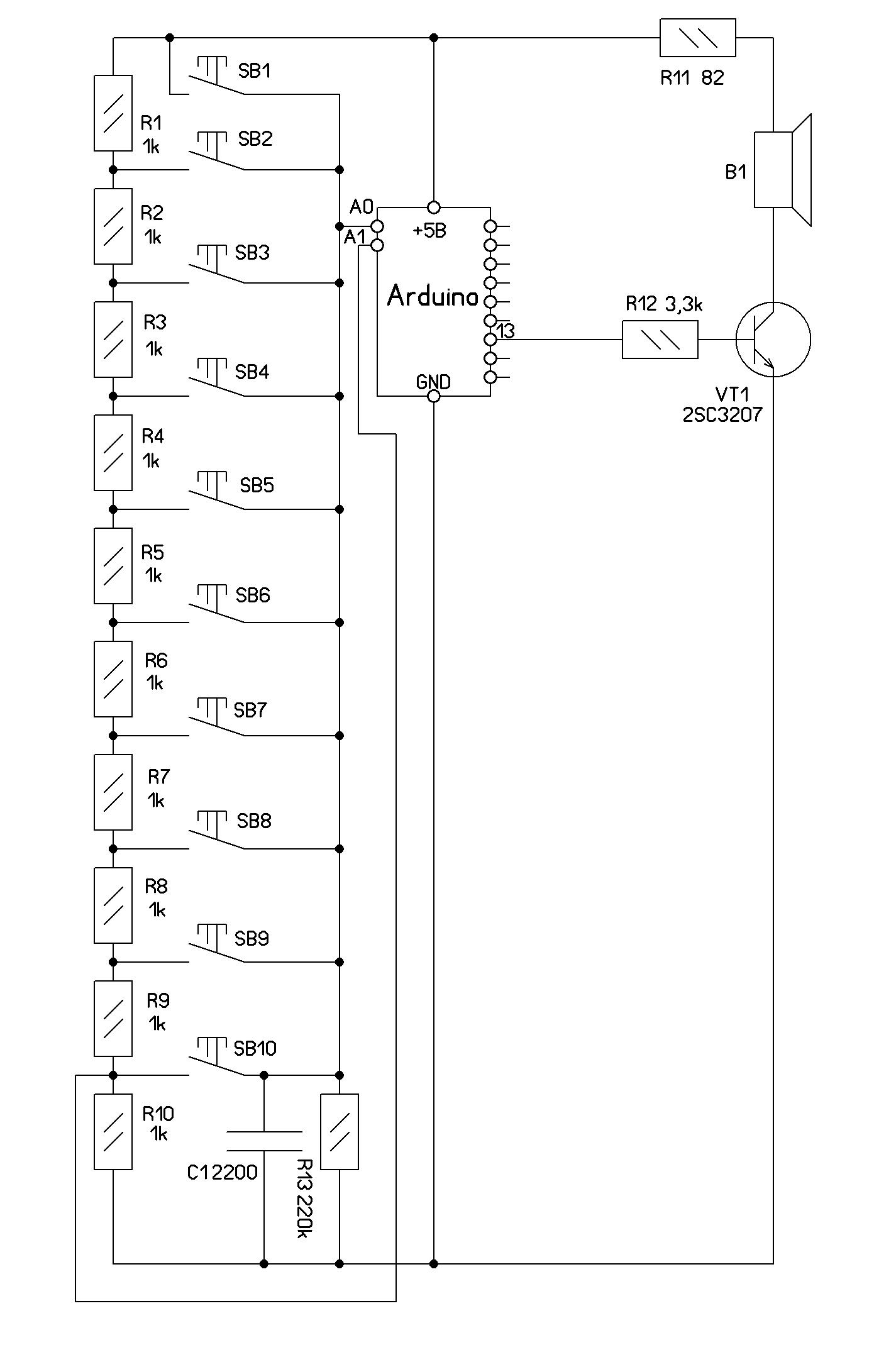:многоголосный ЭМИ. Идея проста, на каждый вывод кнопка и динамик, а программно своя нота... и будет чистое многоголосие (даже не синтез звука).760 (из скетча)это длительность в микросекундах логического уровня на выходе для ноты "ми" второй октавы...И кнопки абсолютно независимы и выводы все заняты и команда tone()не нужна и подлинное многоголосие...Даже каждая новая нота добавляется в скетч простым копированием с изменением индексов, значения длительности наличия данного логического уровня и сменой номера вывода...Красота...(проверял на трёх нотах). ////////////////////////////////////////////////////////////////////////////////////////////////////////////////////////////////