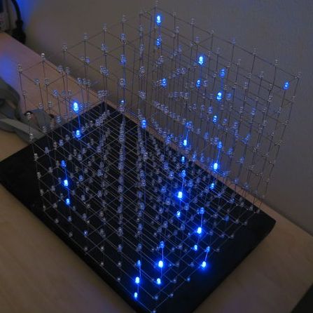 Вообще верхний куб легко переделывается в тип нижнего - достаточно по стрелке соединить выводы светодиодов на каждом уровне.Так, мне кажется, будет удобнее делать решётку куба.