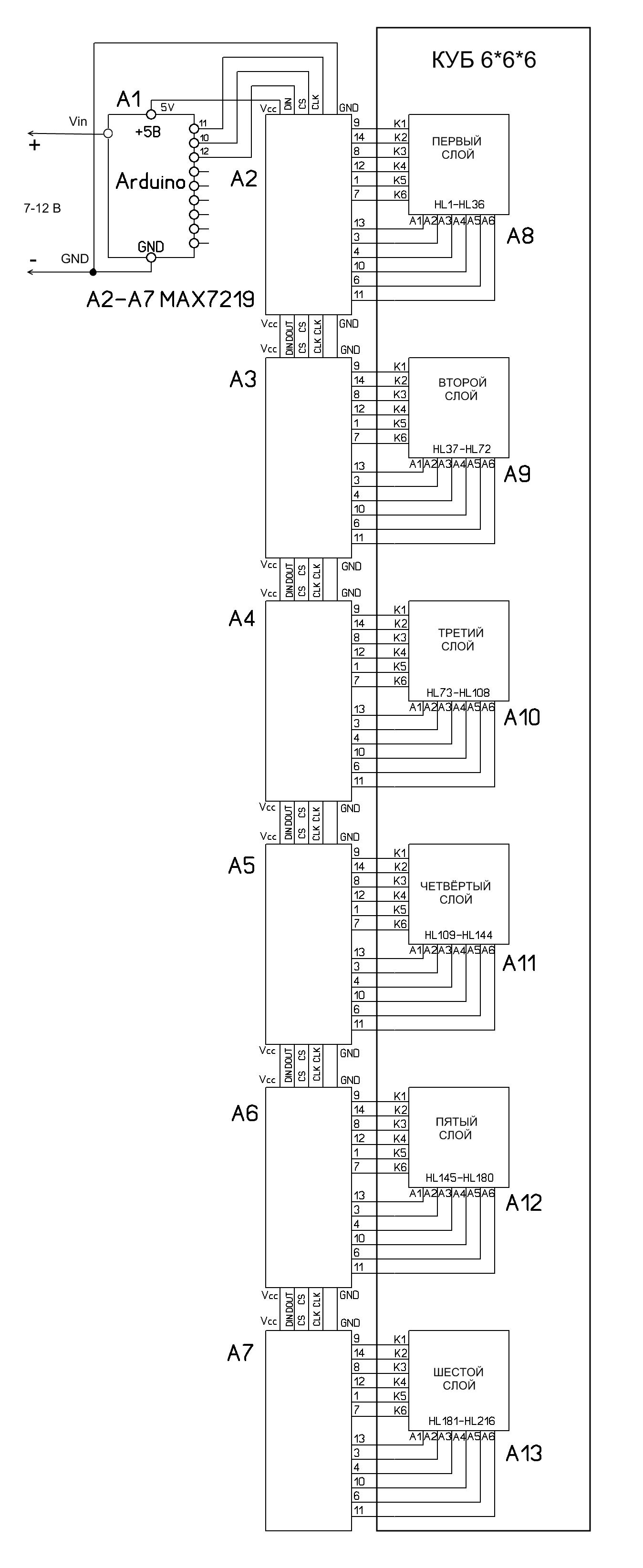 не хочется 7219, можно на каждый слой по две 595е или ещё какую комбинацию сдвиговых (со встроенным шимом или без), защёлок, дешифраторов,... хочется слои соединить, ну так соединяй. не нравится как в том проекте куба 16*16*16, можно примерно так