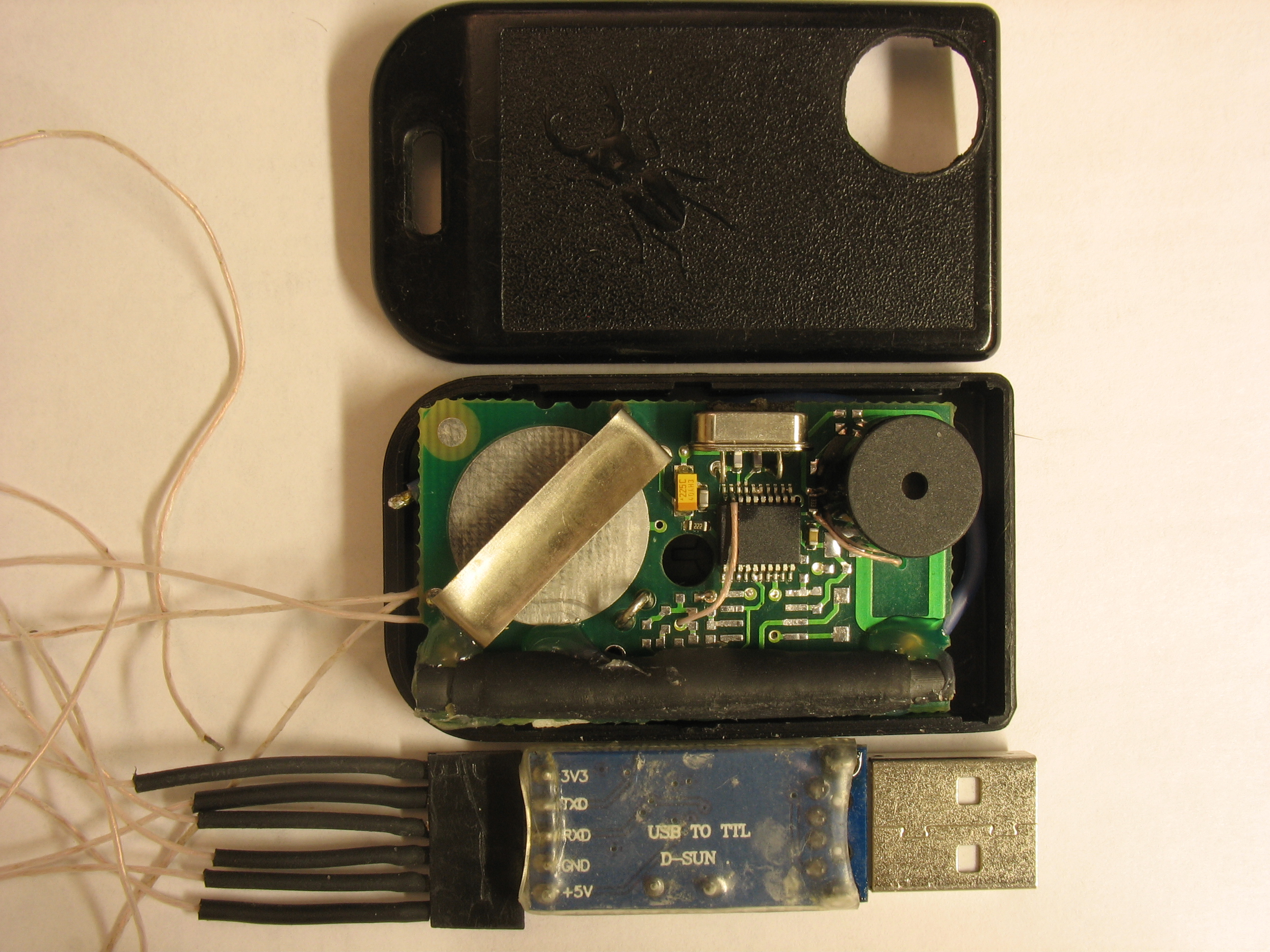 RFID метки сделаны на pic16f микроконтроллере. Имеет приемник/передатчик на 130 кгц. + передатчик на 433мгц.