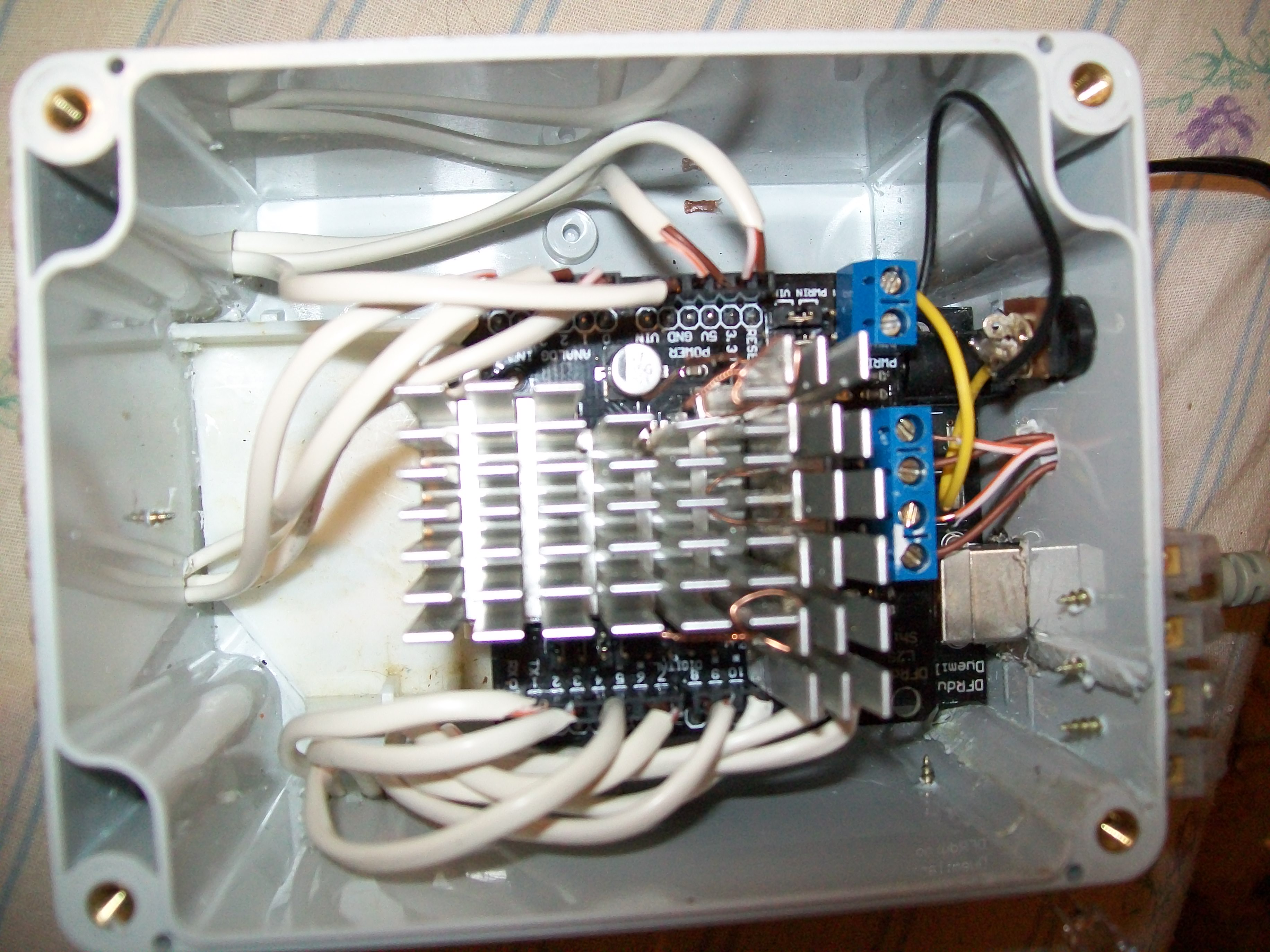 так провода - это всего лишь вывод пинов на внешнюю стенку коробки (клеменники). К ним ничего не подключено. Схемы мне ещё рано - я только диодами моргаю и пьезой пищу сонату Бетховена)Термодатчик ещё подключил. Но блок питания сгорел первый в обще когда платы голые были, соединены только вместе (контролер и драйевра). Повторюсь - провода это выводы пинов для удобства подключения (к ним ничего не подключено). сижу сегодня целый день и башкень кругом.. от чего. Подскажите от чего может быть так? Может полярность? (больше нечего). Хотя я перепроверил её много раз....