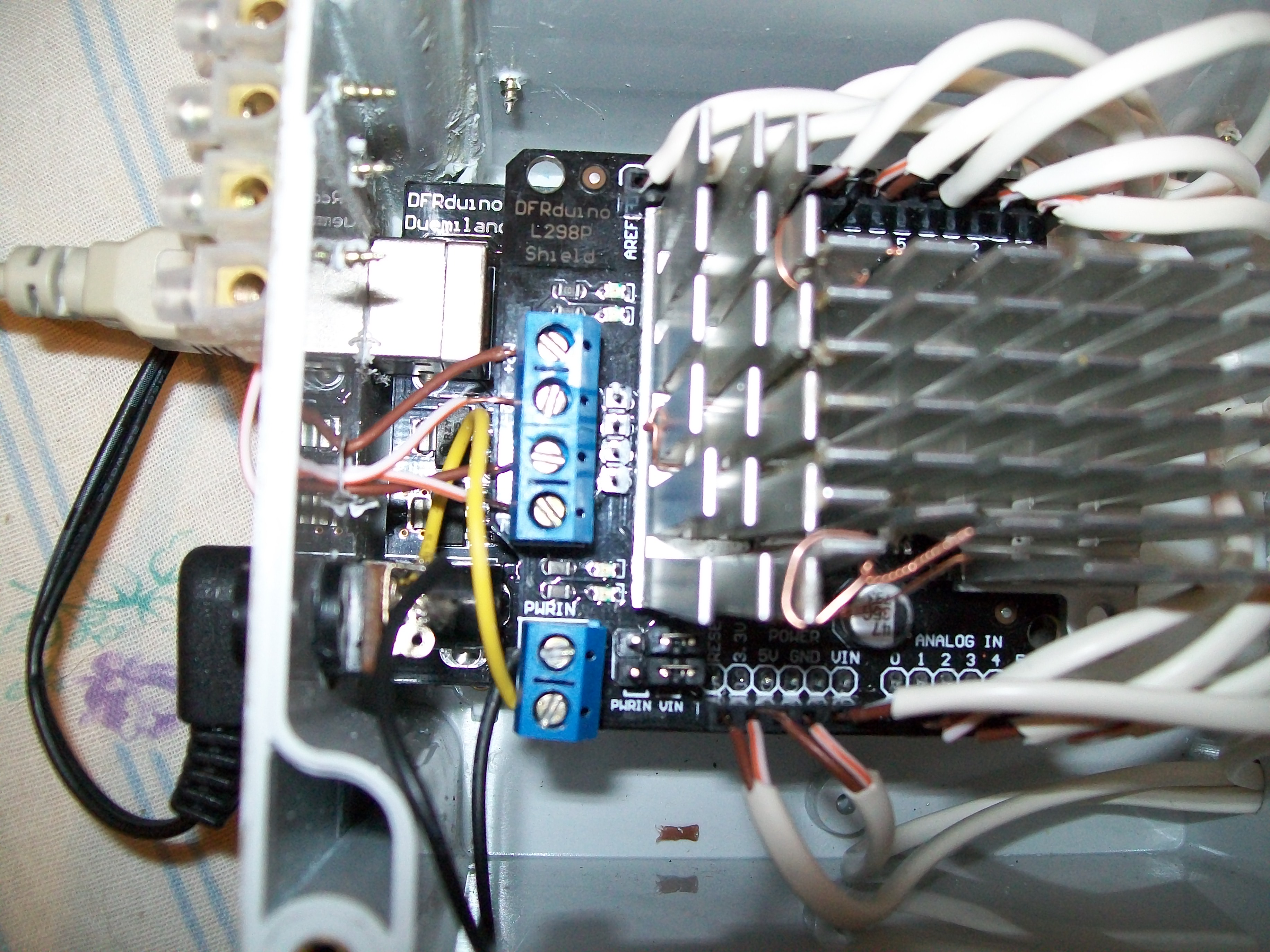 Добрый вечер, я абсолютный новичок в вопросах программирования, прошу совета. Приобрел Контроллер DFRduio Arduino Duemilanove (Atmega 328)и двухканальный драйвер моторов DFRobot для Arduino на L298P (<2А на каждый канал). Платы соединил, питание на Контроллер 8 вольт, на драйвер двигателей 12 (в реал 17 вольт джампера на драйвере переставил на питание отдельное), приделал радиатор (грелось). блок питания 500мА выдает. Но сгорает уже 2-ой блок питания (идентичные) С треском и запахом сгорает.... Подскажите в чём может быть дело? Полярность при подключении - как на оф.сайте, но смутило, что чёрный провод - плюс, красный минус, но вроде как раз на оф сайте так.... Помогите пожалуйста - блок питания последний остался, не дате умереть мечте ЗЫ в идеи - управление двигателем 12 вольт. Посоветуете может блок питания.