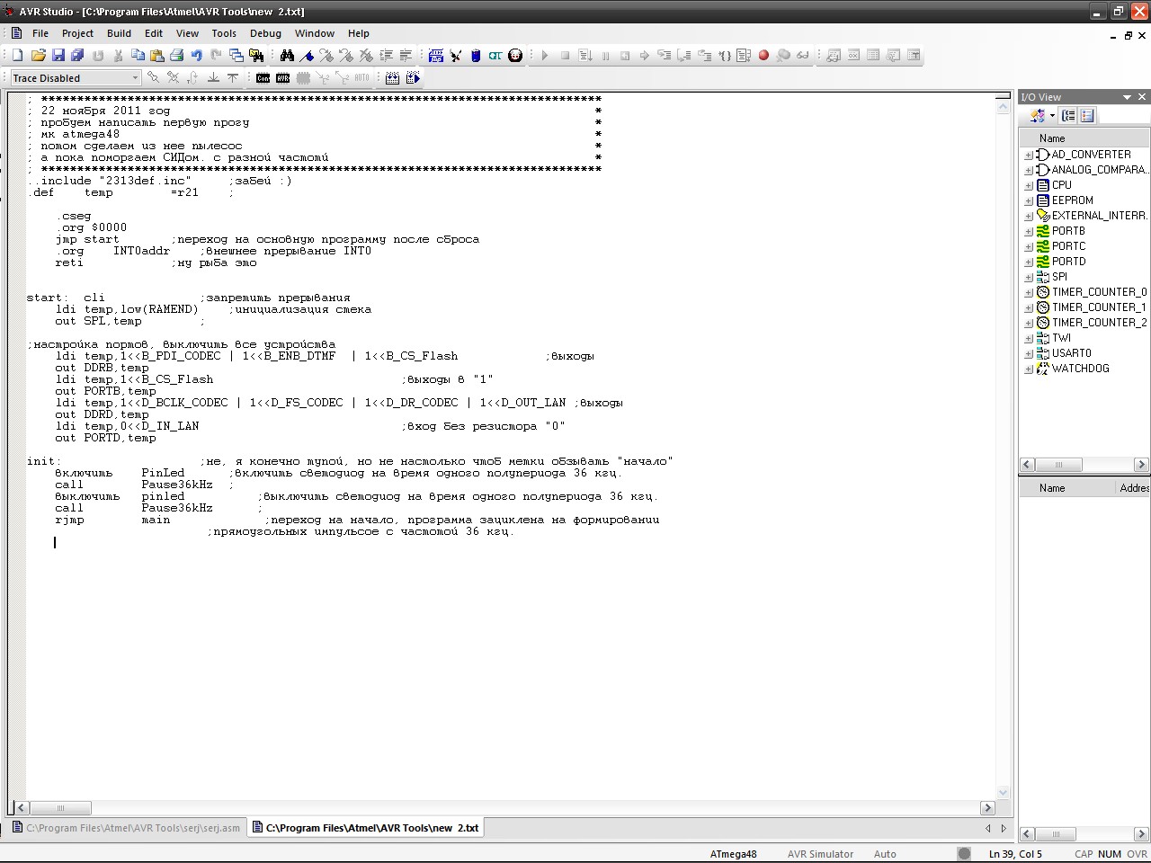 Это конечно ИМХО, но подкрепленное неск. годами юзанья Протеуса, если заметили на скрине у меня 6-я версия, хз какого года выпуска... Есть и 7-я (последняя) в другой ОСи и юзаю я их так как мне удобно, но редактор Протеуса никогда не игнорирурую, потому что от самых первых до последних версий он и асм - родные по крови.