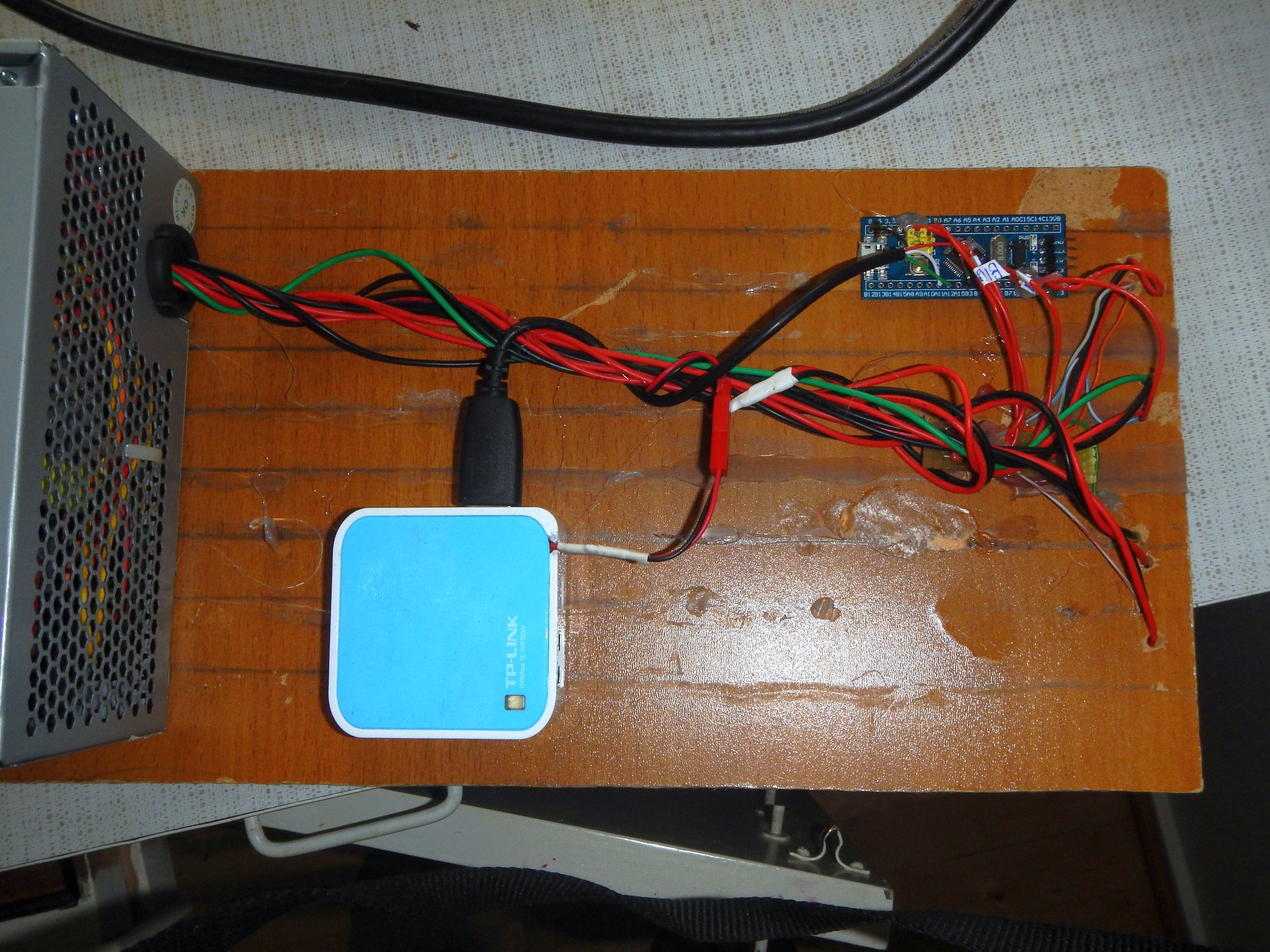 Решил довести до ума начатые и незаконченные проекты. Вот, более-менее довел до ума LED панель. Полноцветная, 37*8 WS2812(лента 3м). Убрал все разъемы, кроме 2(питало роутера и USB), все припаял, воткнул мелкую плату с stm32f103 вместо stm32f0-discovery. Избавился от USB-UART, теперь в самом МК прошит USB-serial, через который он получает данные с роутера TL-WR703(OpenWRT + пара моих скриптов). Посадил на термосопли, допилил скрипт в роутере. Теперь не очень стыдно людям показывать. Надо будет еще ленточки подровнять и обтянуть чем-нибудь темным. Видео