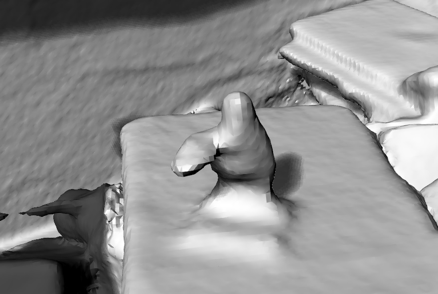 Я в софте киннекта вижу максимум 640 вертексов на метр. То есть 1.5 мм на вертекс. Опыта мало, не могу утверждать, может это проблема софта, а не камеры. Но пока мелкие модели получаются уж очень зализанными.