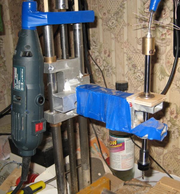 синяя изолента держит мотор, а так же устраняет звон алюминевой трубы шпинделя, без изоленты звенит противно.