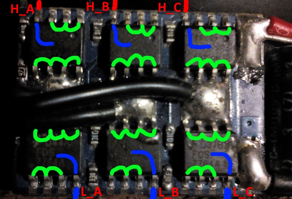 вопрос, а как мне собственно на силовой части определить где там какой полумост?