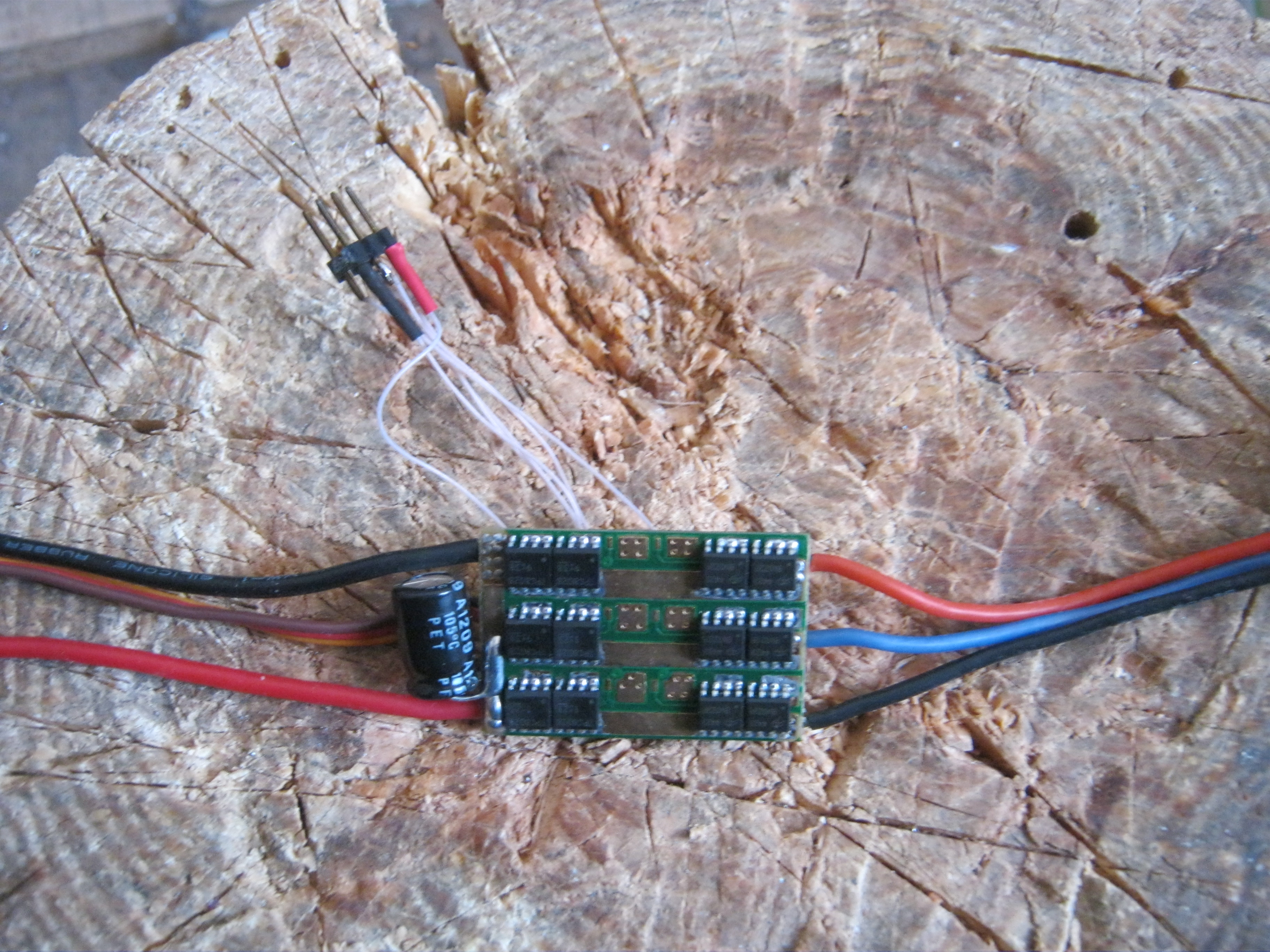Но не все так плохо. Проглядывается схема управления верхними транзисторами по бутстрепной схеме - диод и керамич. конденсатор на каждый верхний транзистор. Но нижним транзисторам, похоже, не досталось ключей, значит управляются прямо от пинов avr, это плохо, т.к. будет большое сопротивление транзисторов в открытом состоянии, но я на вилы не попал, это хорошо, но и на стог сена - тоже, это плохо, но...