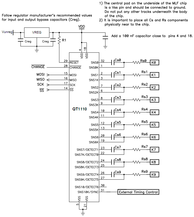 AT42QT1110 - сенсорный контроллер на 11 "кнопок" в автомобильном исполнении