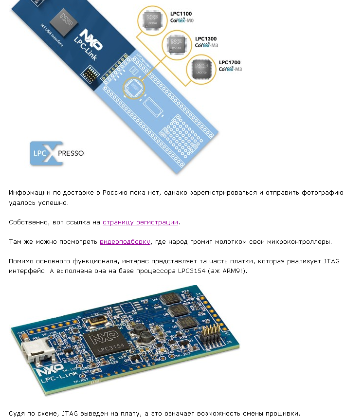 Кстати и платы с отладчиками LPCxpresso и процессоры LPC и макетные платы под них с шагом 0.5 мм есть в наличии у Семенова Михаила - www.mkpochtoi.narod.ru/price.htm