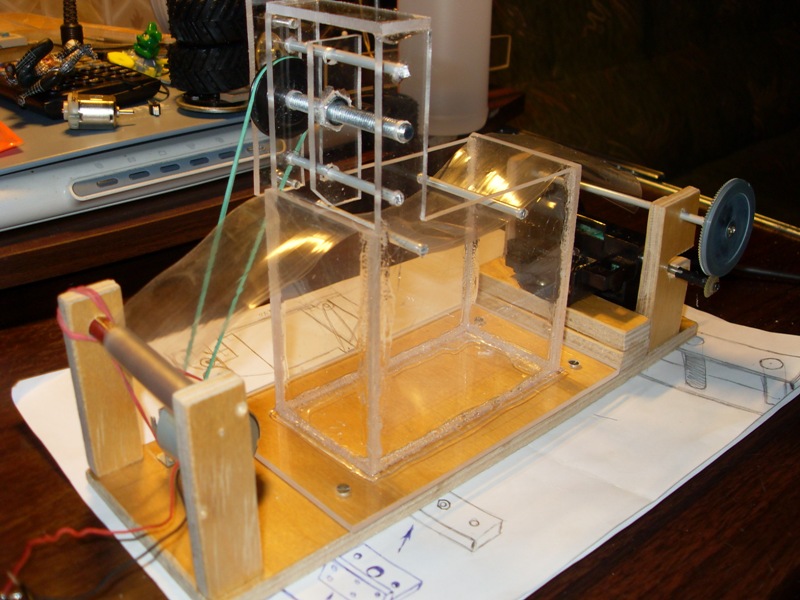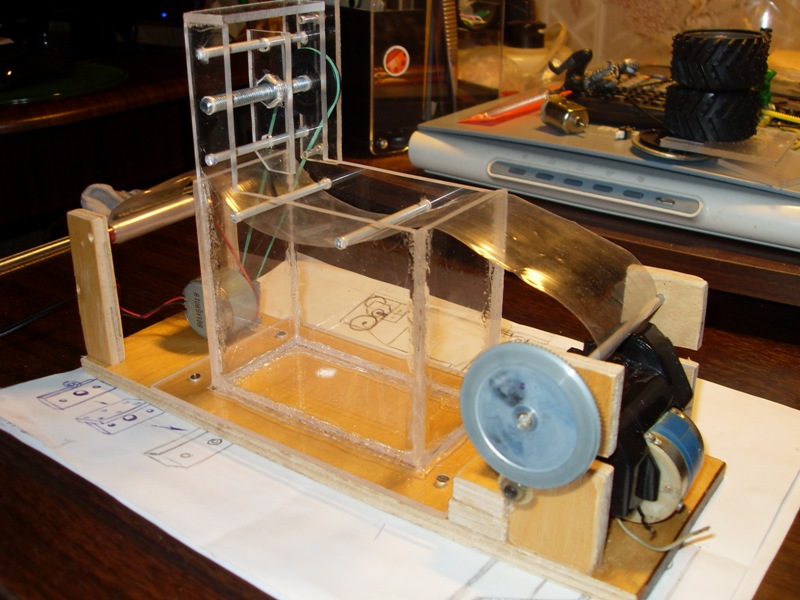 Собрал за три дня такую установку, фото расположил ниже, осталось еще платку для синхронизации движений спаять и все отладить (настроить).