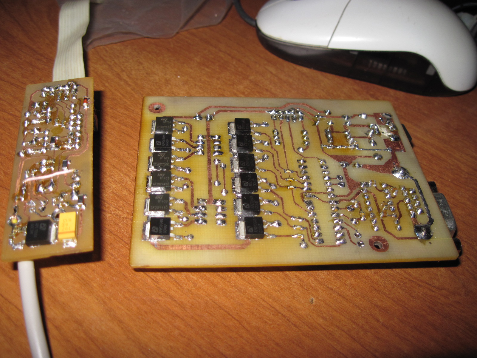 (было принято решение использовать USB, софт был оптимизирован, добавлен режим moodlight, т.е. воспроизведение без компа залитой в память последовательности и т.д.)