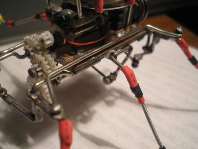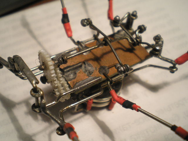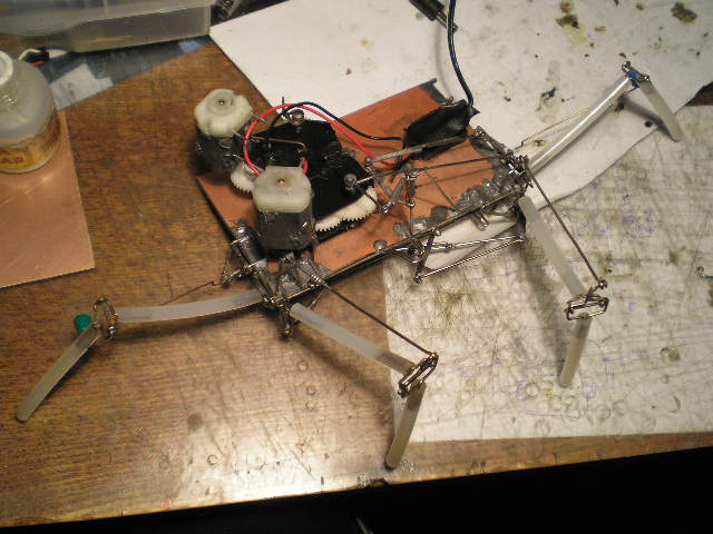 XEOn8 писал(а):Долго сидел, думал над конструкцией(делаю нового таракана, более жизнеспособного и крепкого), но как-то туго идет.. в общем сейчас есть разве что готовая основа, с редукторами и коленовалами.. сижу думаю, как его бегать заставить, у меня 2 двигателя - по одному на каждую сторону, 2 коленовала соответственно с 3мя коленами через 120 градусов(по одному колену на ногу).. одна тестовая нога, которая крутится просто так вперед-назад, так, для осмысления происходящего.. вот собственно и вся картина, твой принцип движения не подходит, а свой при таких мелких масштабах не катит.. сижу в раздумьях.