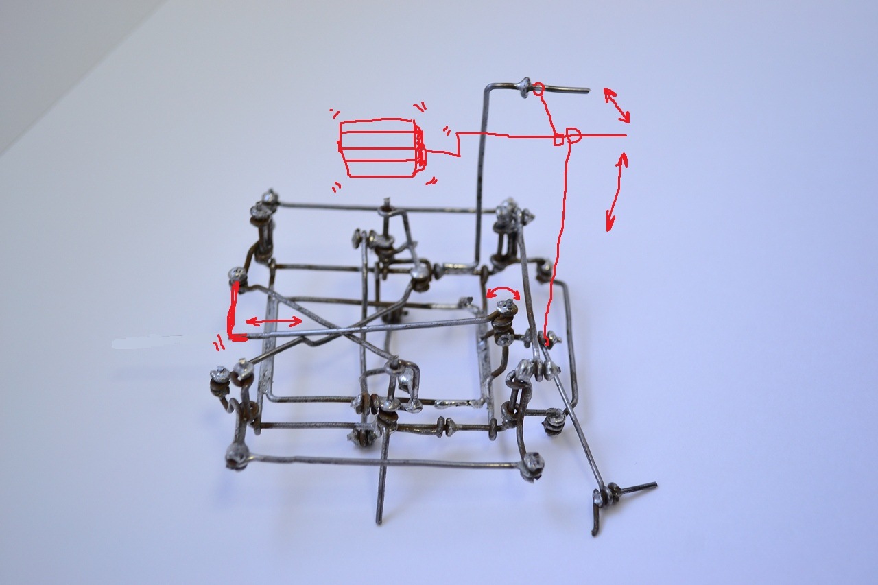 У меня эти две перекладины, к одной из которых прицеплена тяга у МБ получились слишком "плавающими" что ли и двигаются не поступательно в итоге, как у мэтра, а примерно восьмёркой, а это исключает возможность "паянного" присоединения тяги к этому месту как у него, вот поэтому я и не могу придумать куда её ещё можно прицепить, чтобы это было эффективно :(