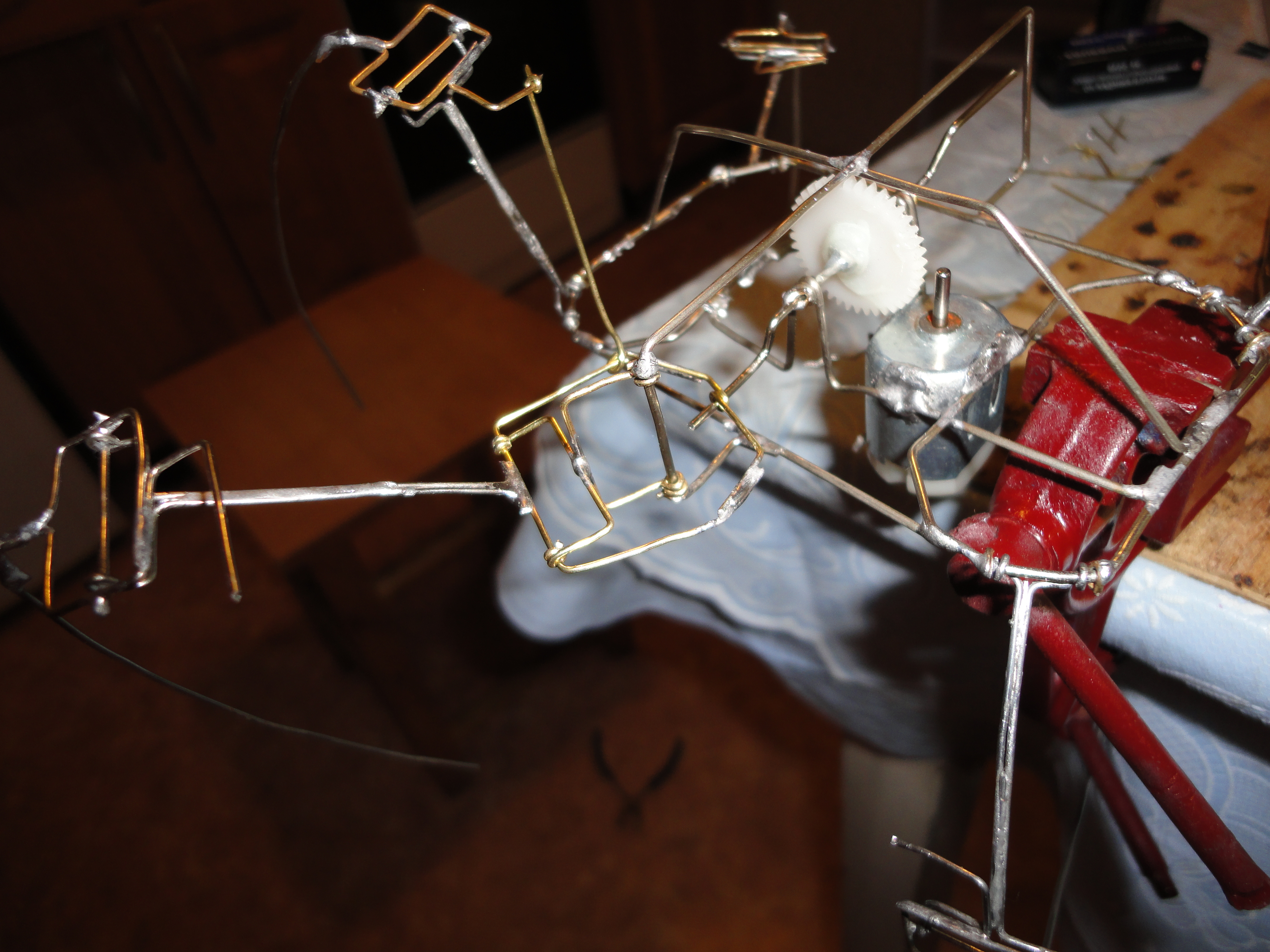 Походу у меня все вообще не верно, и никак не переиграть уже а по фоткам дак все также идет таже рама такие же ноги.... Сейчас сделал вот что со своим, расшил немного раму, тем самым сделал ось кривошипа посередине. Решил попробовать сваять "весло" хотяб на один борт и подумать что да как действовать дальше. Спаял, изогнул, добился чтоб не клинило. Вроде поворачивает, и немного задирает ногу. Тяги крутил вертел но так и не додумался куда цеплять.