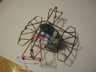 пашка 123, дак и все переделки? можно собирать вторую сторону? У меня средняя нога получается сейчас после переделки тяги стала описывать совсем небольшой эллипс, приподымается немного и ходит больше в одну сторону чем в другую это походу из за неровности той части которую ты отметил синим, сейчас попробую покрасивее и поровнее перепаять и посмотрю что получится.