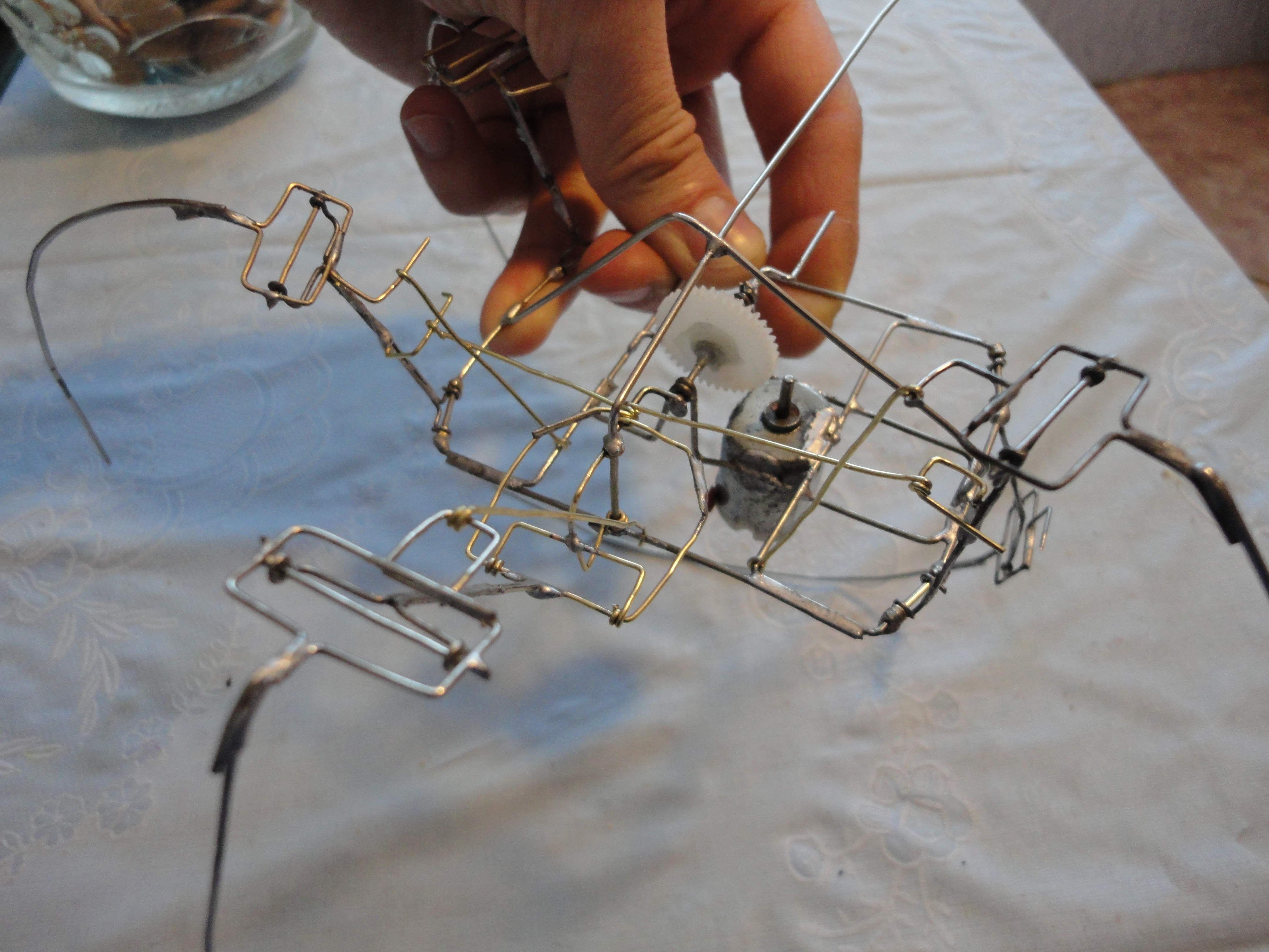 И вот записал видео как он пытается ходить и двигает конечностями, может что подскажете где подтянуть или переместить. Видео первое в архиве, питает одна батарейка, ходить не может силы не жватает но зато показывает как крутит механизмы и как вертятся лапы: