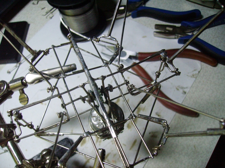 Нее, третья рука - это весчь! А теперь по теории Каракурта: если тяга ко второй фаланге параллельна первой фаланге, то получаем параллелограмм (первая фаланга, тяга второй фаланги, рычаг второй фаланги, база на раме) со всеми вытекающими. Первая фаланга шевелится веслом, ход ее не большой. Она же приводит в движение параллелограмм. Но поскольку ход не большой - взаимное положение первой и второй фаланг мало меняется. Эквивалентно было бы спаять фаланги да и все. Если тяга второй фаланги имеет бОльшую базу, чем рычаг второй фаланги, то при движении первой фаланги вверх, вторая фаланга тоже идет вверх, тем сильнее, чем больше база относительно рычага. Если база на раме меньше рычага второй фаланги (а может быть равна нулю или быть отрицательной (тогда тяга второй фаланги и первая фаланга перекрещиваются)), то все происходит наоборот: когда первая фаланга идет вверх - вторая фаланга идет вниз. Значит возможны 3 варианта протяжки тяг ко вторым фалангам. Сергей на фото выше склоняется к первому варианту - к параллелограмму. Почему? Может быть есть другие мнения? Я узнаю ответ на этот вопрос на практике, но может кто-то избавит меня от лишней работы? И еще вопрос вдогонку: видел что тяги ко вторым фалангам средних ног крестят с первыми фалангами. Почему?