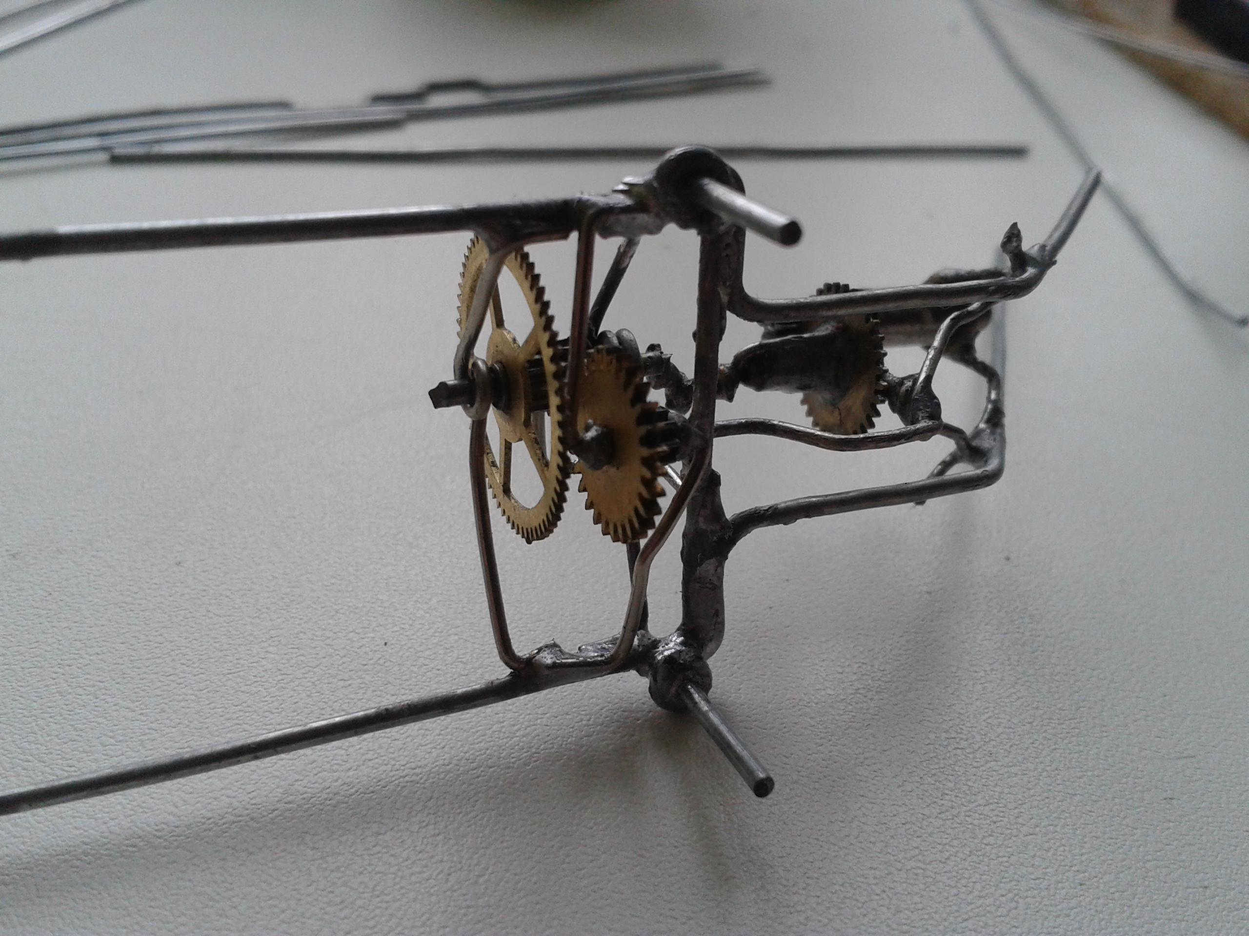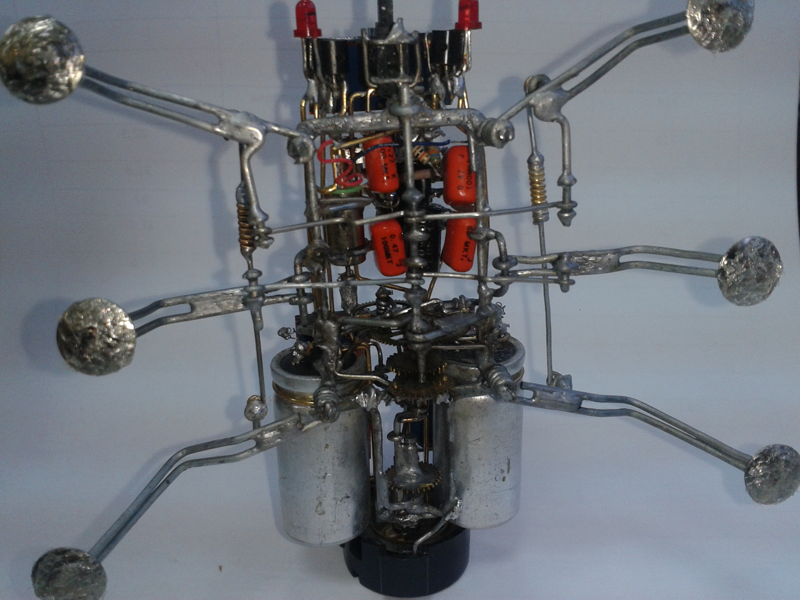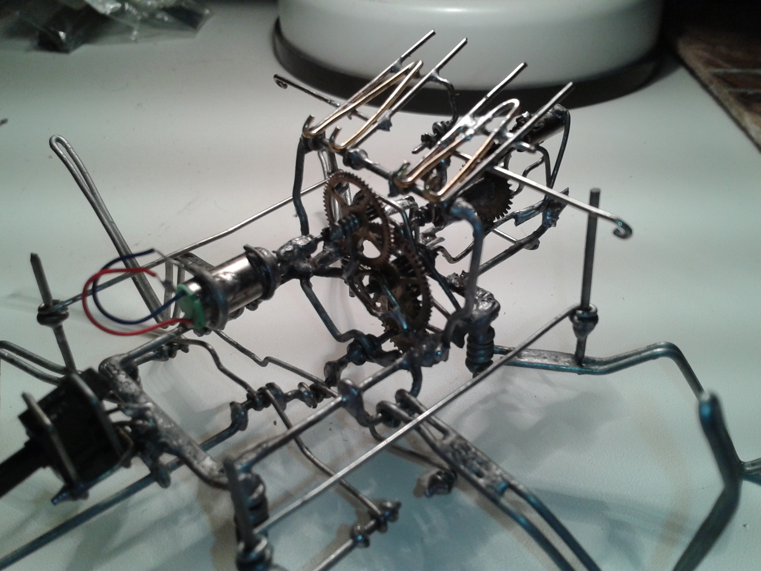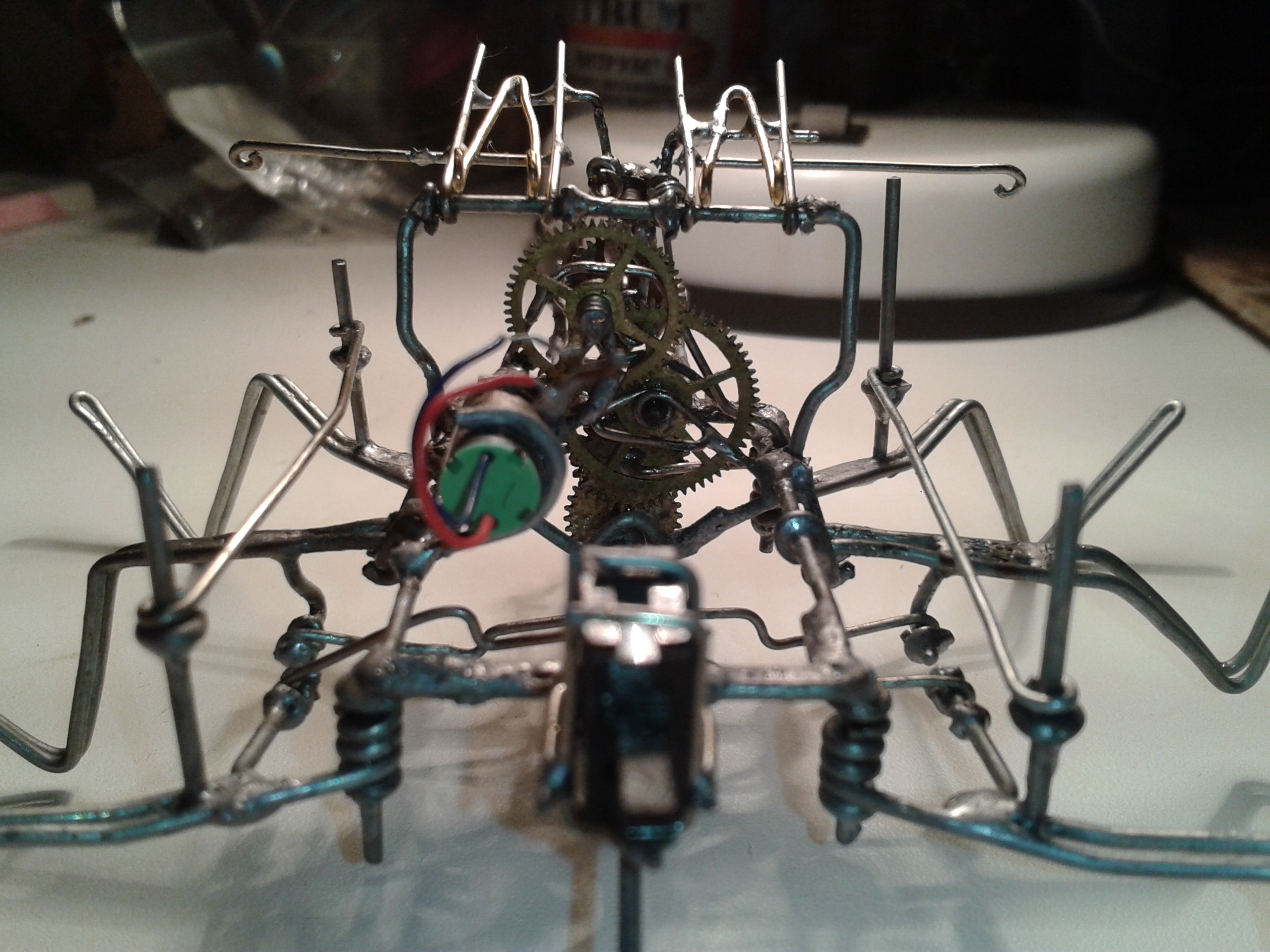 Добавлено спустя 6 минут 39 секунд:Re: Павуки (и не только) из разогнутых скрепок и прочего хлама..А одномоторная это куча переплитающихся тросиков и страшный коленвал в башке, собственно как я и люблю, а на модульной я просто показал принцип, хотя и моторов у меня хватит