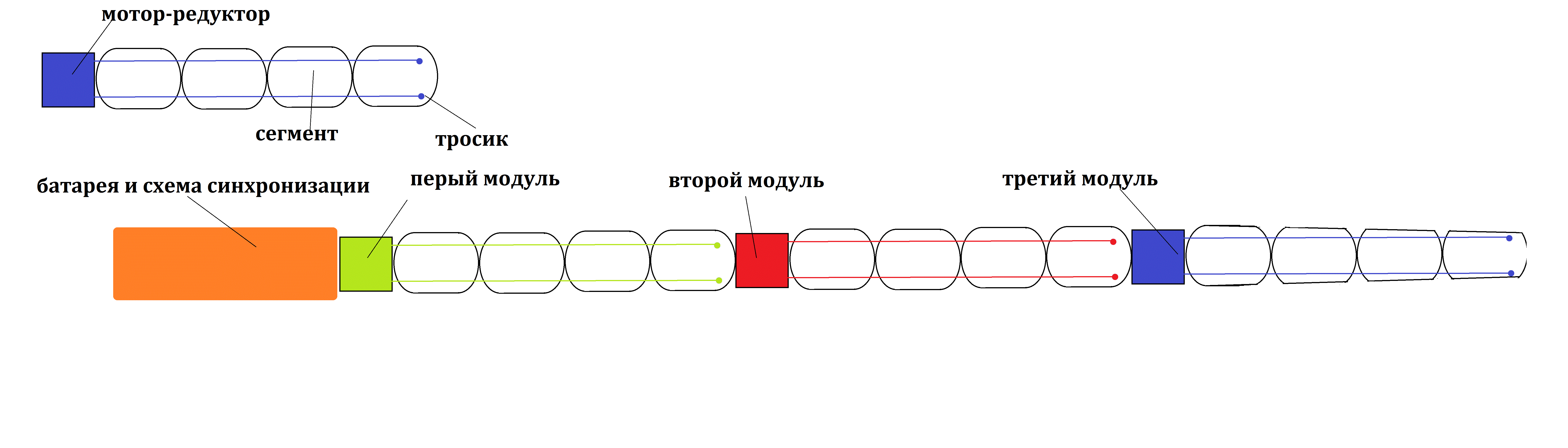 А первоначальную схему можно на словах, это было три сегмента, в среднем мотор с коленвалом который раскачивал бы первый и третий..... брррр... это даж не змея, а нечто очень смешное и уже похоже не движимое