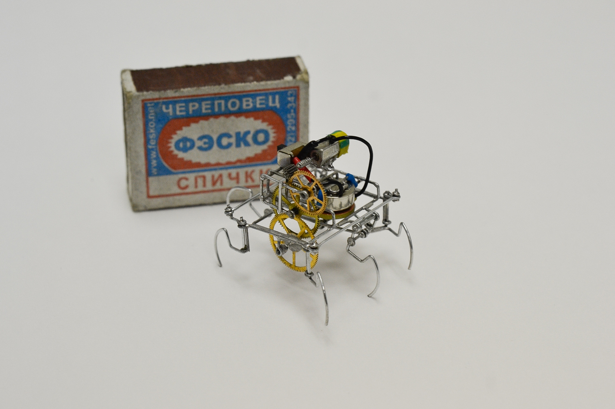 . Медлителен потому, что хотел сделать ход так сказать эффектнее (ну мне так больше нравится). А на 3 Вольтах бегает резвенько ежели че, проблема только 3 Вольта эти, затолкать на раму, была...