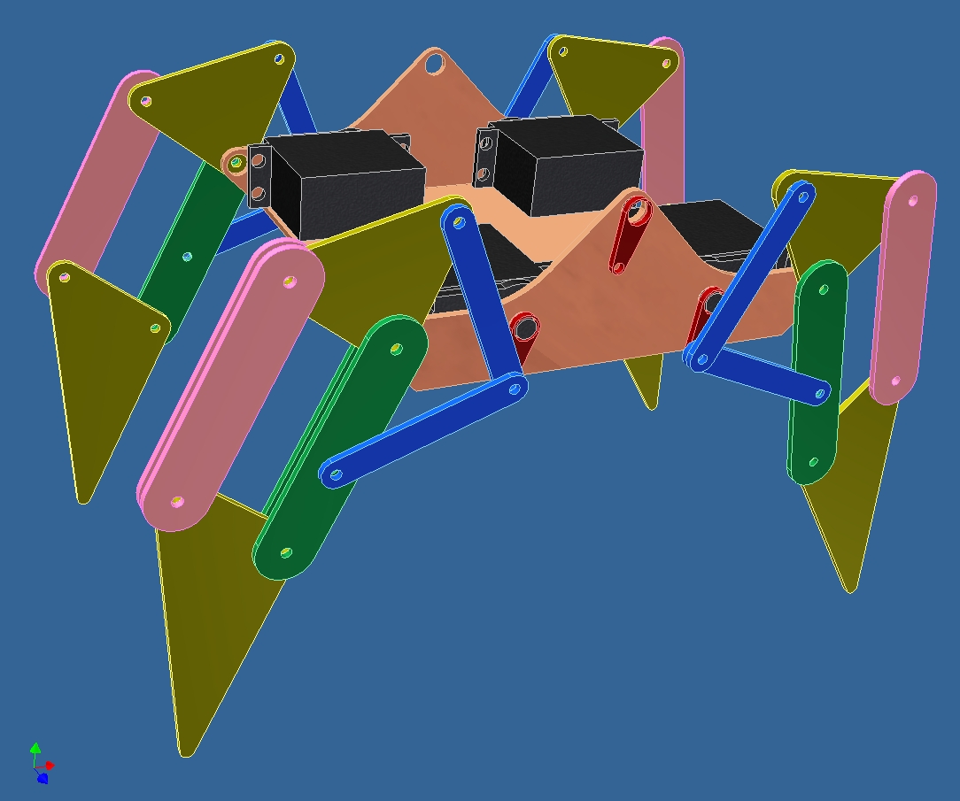 Тут важно понять что шатун имеет как бы ограничение его типо свободы - обязательно должна быть вторая "направляющая" (первая - это кривошип). А рассматривать механику работы (ну и пусть что с люфтами) лучше на китайских - там всё видно. А варианты исполнения, канешно, могут быть разными. У китайцев прельщает компактность: весь робот собран на поворотном столе и только шатун "спущен" в зону ног, превращаясь таким образом в "водило"...