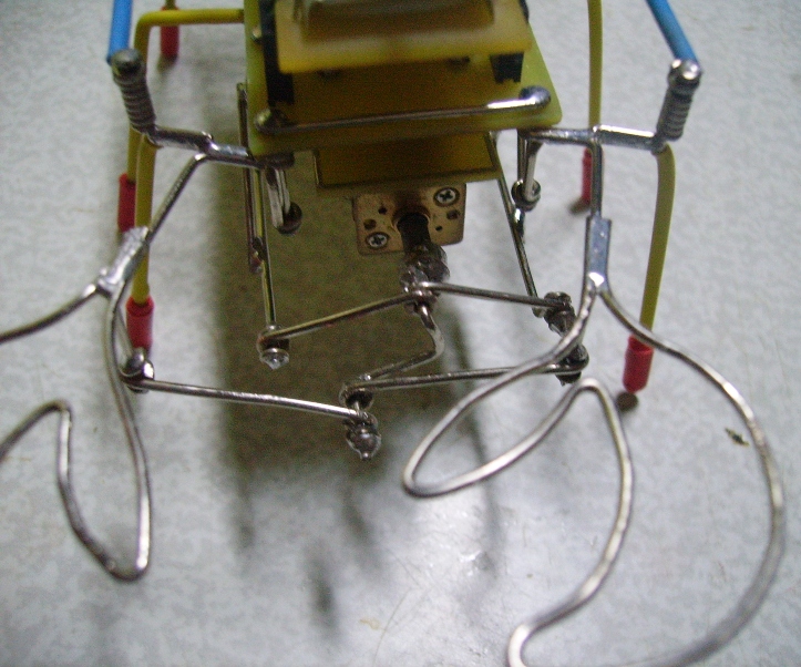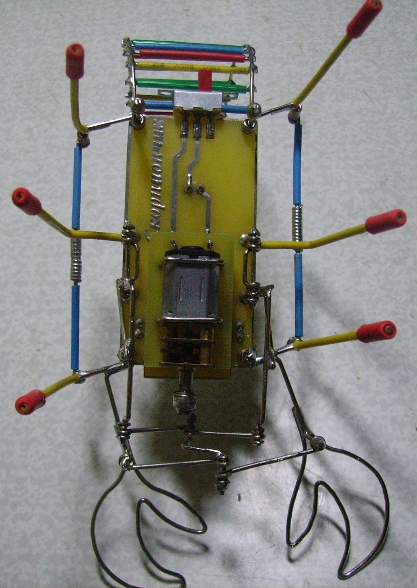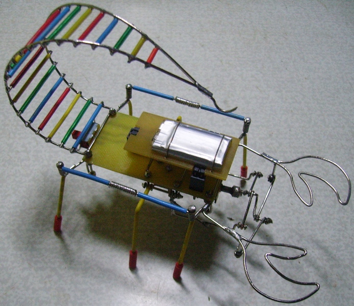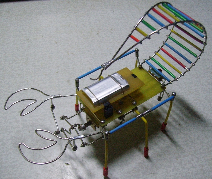 Radist писал(а):Захотелось мне переделать своего первого шагохода, ведь теперь у меня появился какой-никакой опыт. Но тупо повторять конструкцию - скучно. К тому же самая для меня противная вещь в шагоходах - это коленвал. Решил без него как-нибудь. В итоге взял мотор от Скорпиона, лишние шестерни убрал и сделал маленького Скорпиончика, а в развитие темы - анимировал ему клешни и выкрасил хвост. Вот что изначально было: