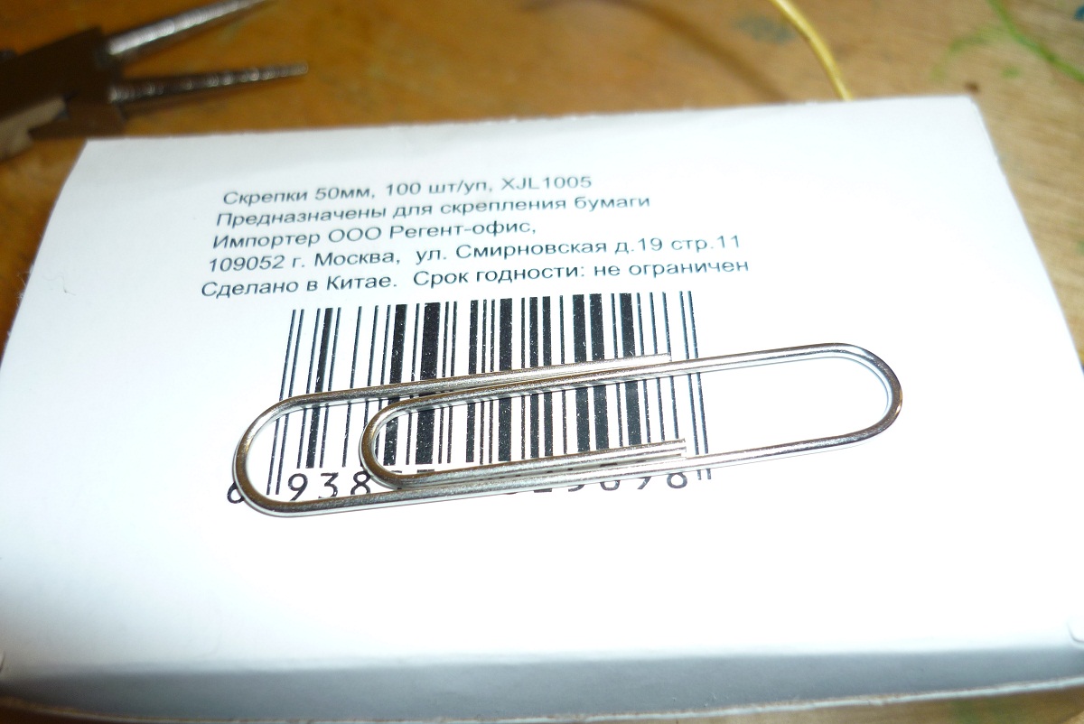 Вчера ходили в супермаркет, жена пошла по шмоткам смотреть, ну а мне стало скучно, и тут я вспомнил про скрепки. Бог мой, я никогда не думал, что их может быть столько разновидностей! Стоял, гнул и ломал всякие разные (благо никто не видит там, что я делаю), в итоге остановился на 50 мм, на картинке. Как впоследствии оказалось, скрепки что надо - упругие, не ломаются и хорошо паяются даже канифолью.