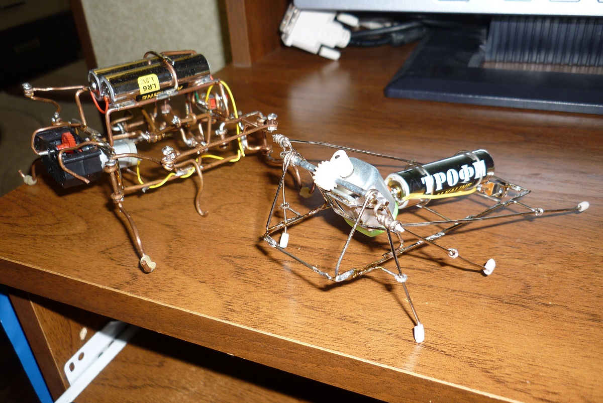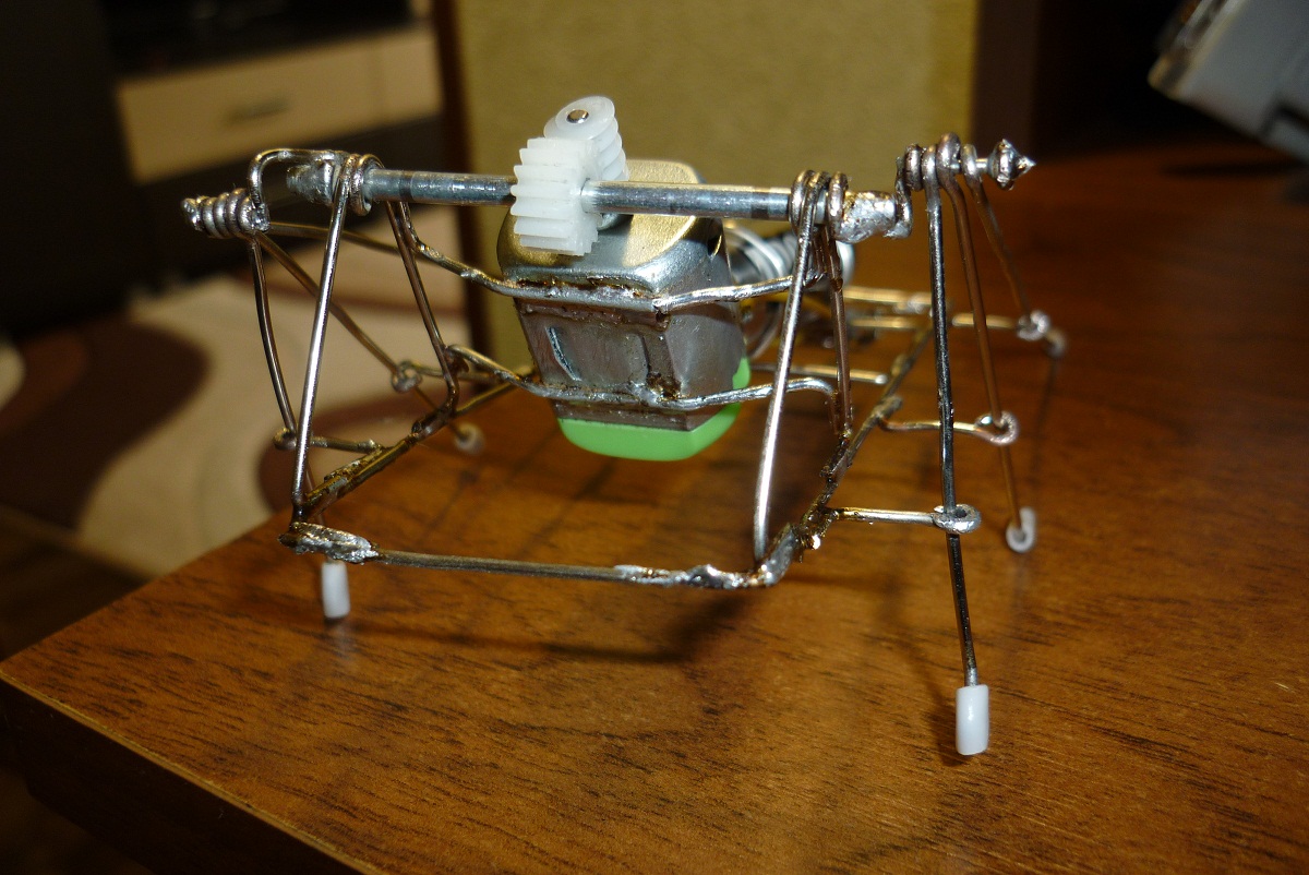 Много косяков, конечно, допустил, но тем не менее паук бегает и пугает собой жену и тёщу ))) Под конец накрутил на лапы паука несколько обрезков от пипетки, чтобы не проскальзывало. Стал заметно резвее бегать.