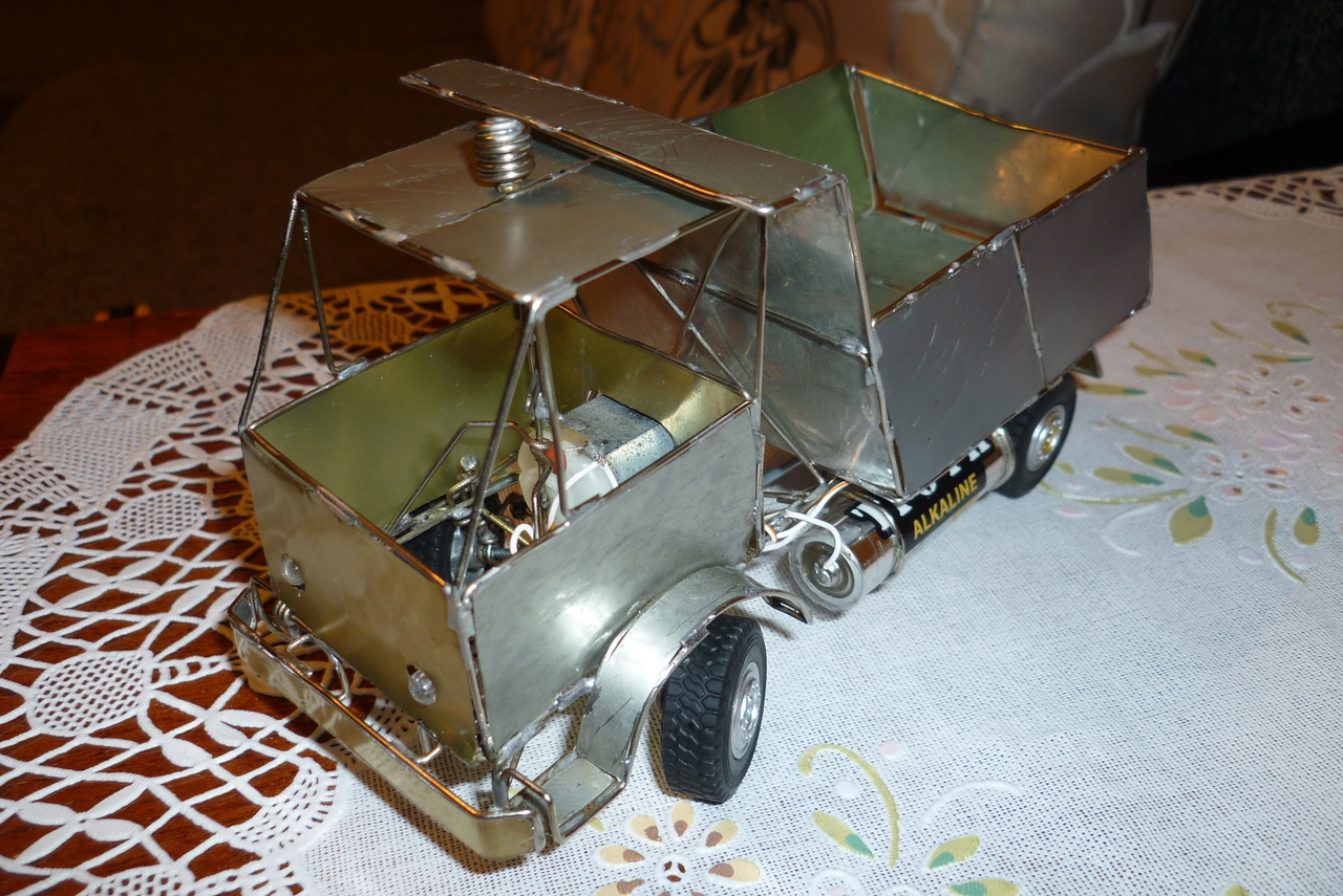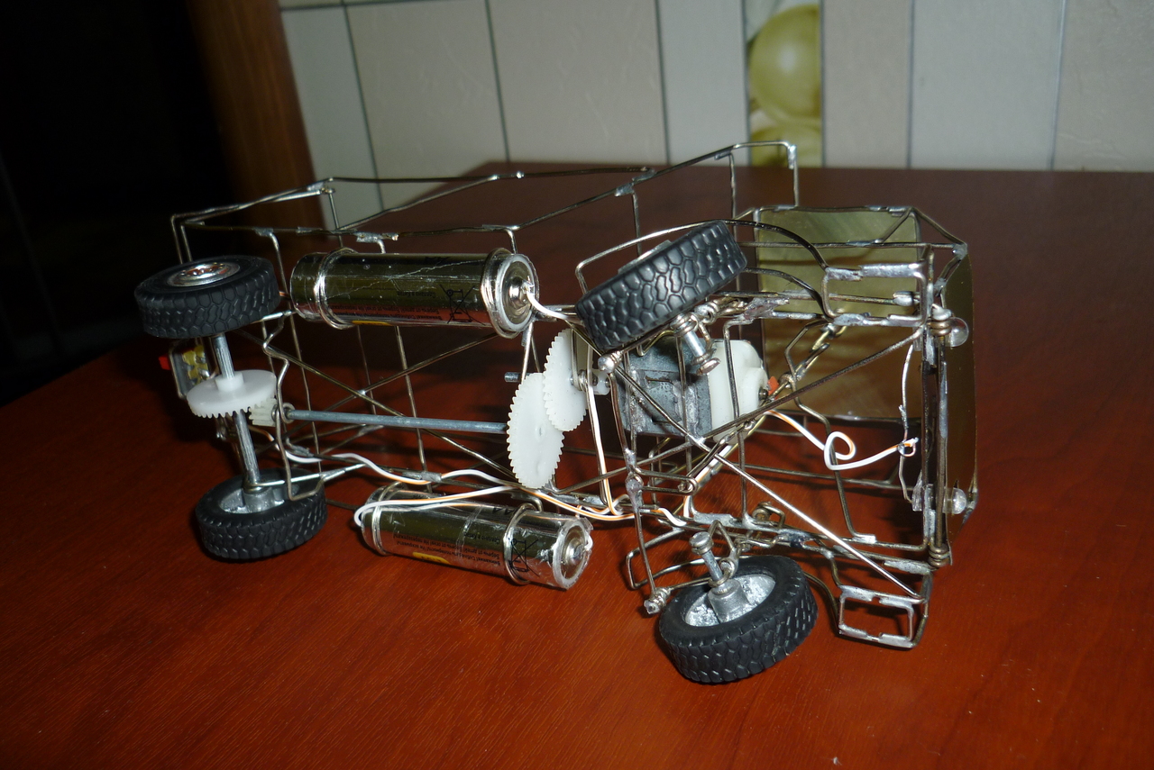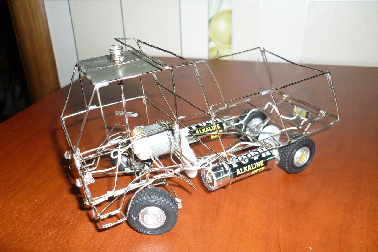Добавлено спустя 7 минут 4 секунды: Re: Павуки (и не только) из разогнутых скрепок и прочего хлама.. Камазик. Передние колеса поворачиваются, фары горят зеленым