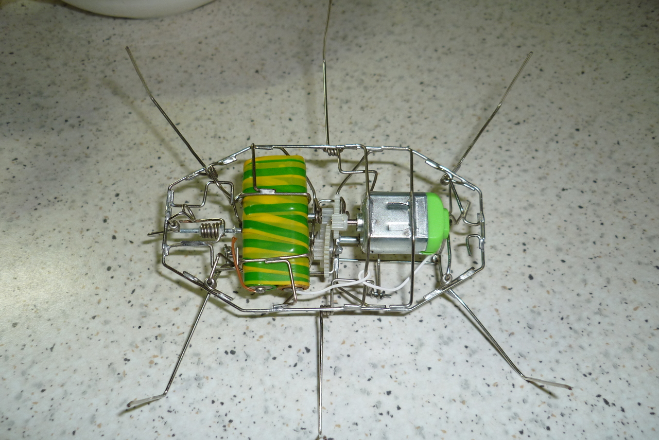 Пусть будет, для коллекциии. Медленноват вышел, но шагает вроде ничего. Выключатель самодельный, ибо кончились те, что вытащил из сломанных игрушек