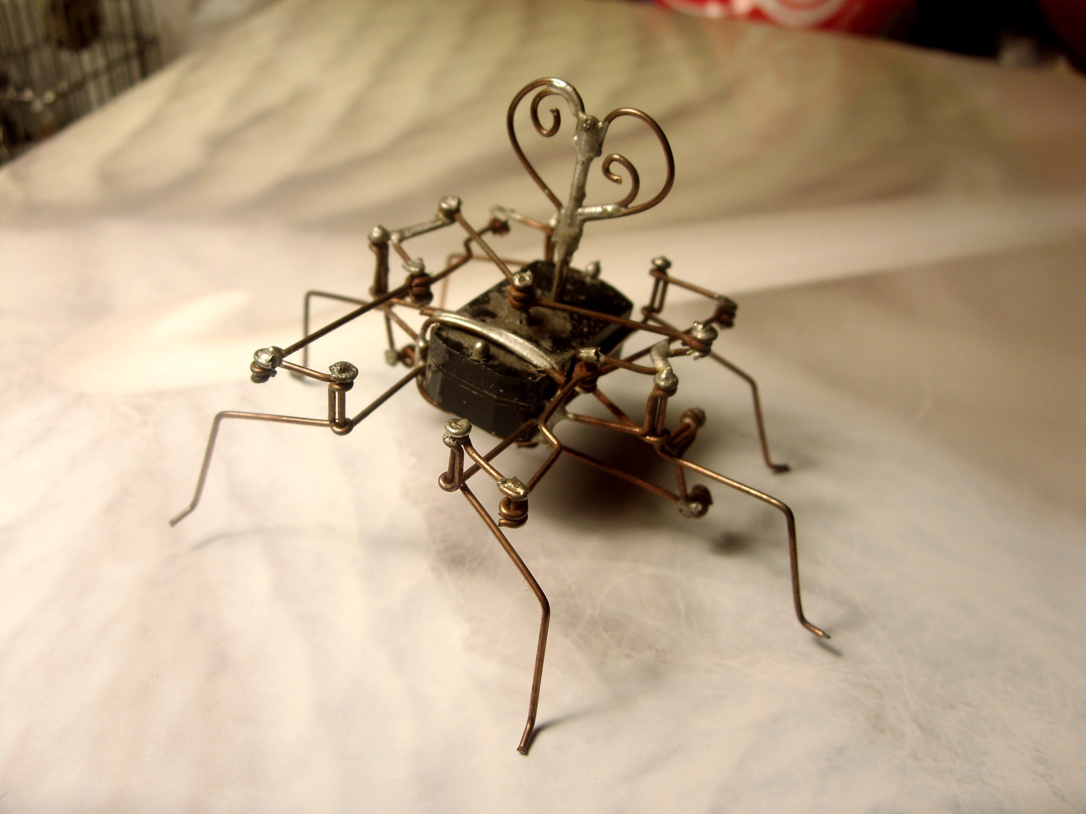 Вначале думал сваять задние ноги навроде Таракашки - чтоб отличались по конструкции от остальных. Для пущей насекомости. Поэтому рама вышла такая вот сумбурная - много лишнего и несуразного. По ходу лепки стало понятно, что в концу наберётся жуткий вес и непроходимая гора чермета... От Красивых заних ног пришлось отказаться в пользу хоть какой-то простоты конструкции.