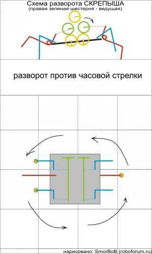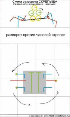 Валы крутятся в разном направлении казявка разворачивается на месте.