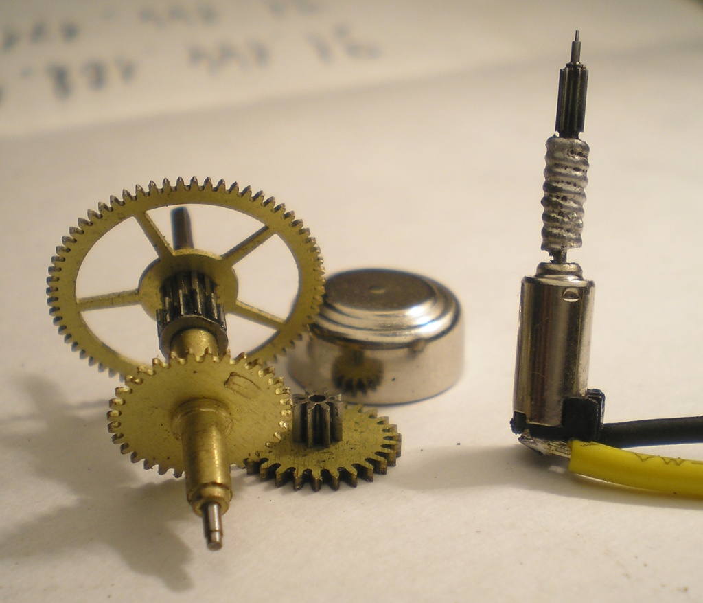 Но в процессе я неуклюжим движением этот моторчик угробил (проводок с мясом вырвал), и перешёл на более удобные 3 таблетки и более жырный мотор (как в шестиструнном "Чаплине"). Получилась вот такая "силовая установка", которую уже хоть на что ставить можно.