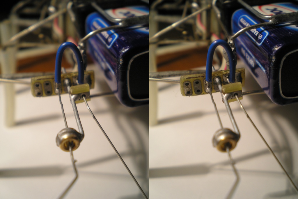 Взял я как-то от скуки это туловище на ногу, повертел в раздумьях в руках, и невзначай увидал причину старой поломки - пока в те запамятные времена припаивался моск, паяло чуток поплавило зубья шестерни... Я прочистил козяфки, и шасси ожило